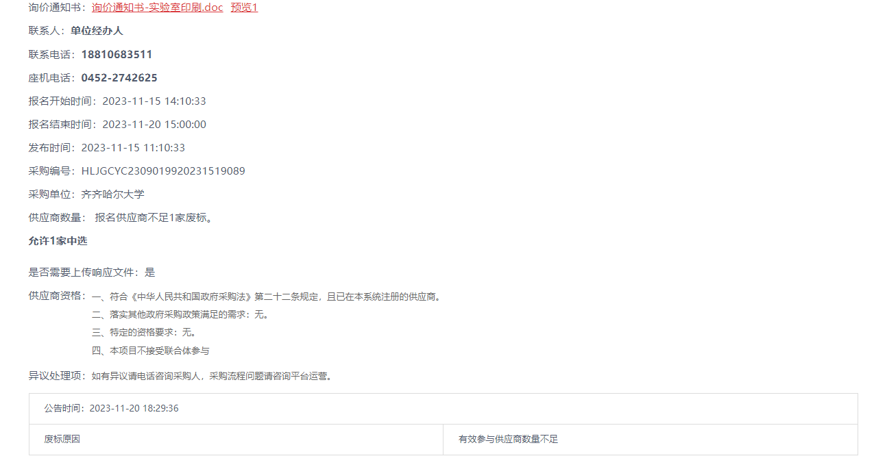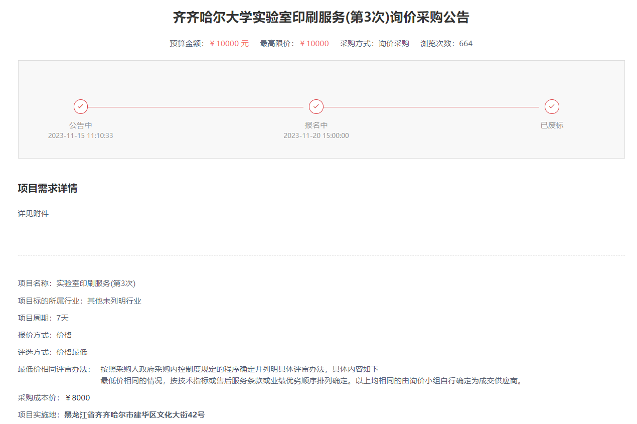 上一条:齐齐哈尔大学2023年工程项目竣工结算审核服务结果公告(转自黑龙江省政府采购网)