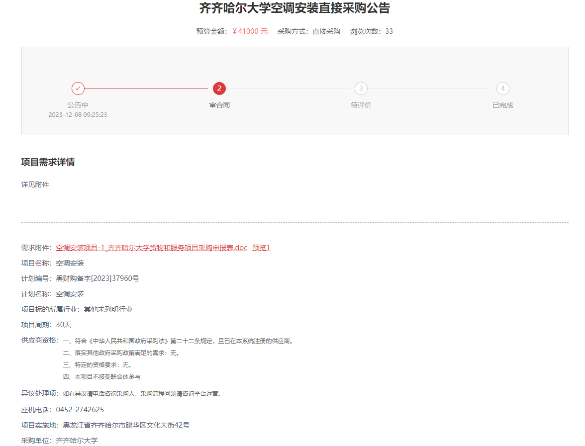 上一条:齐齐哈尔大学空调安装直接采购公告(转自黑龙江省政府采购网)