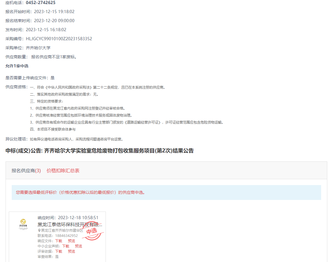 上一条:齐齐哈尔大学2024年大修预算编制、造价咨询服务项目流标公告(转自中国政府采购网)