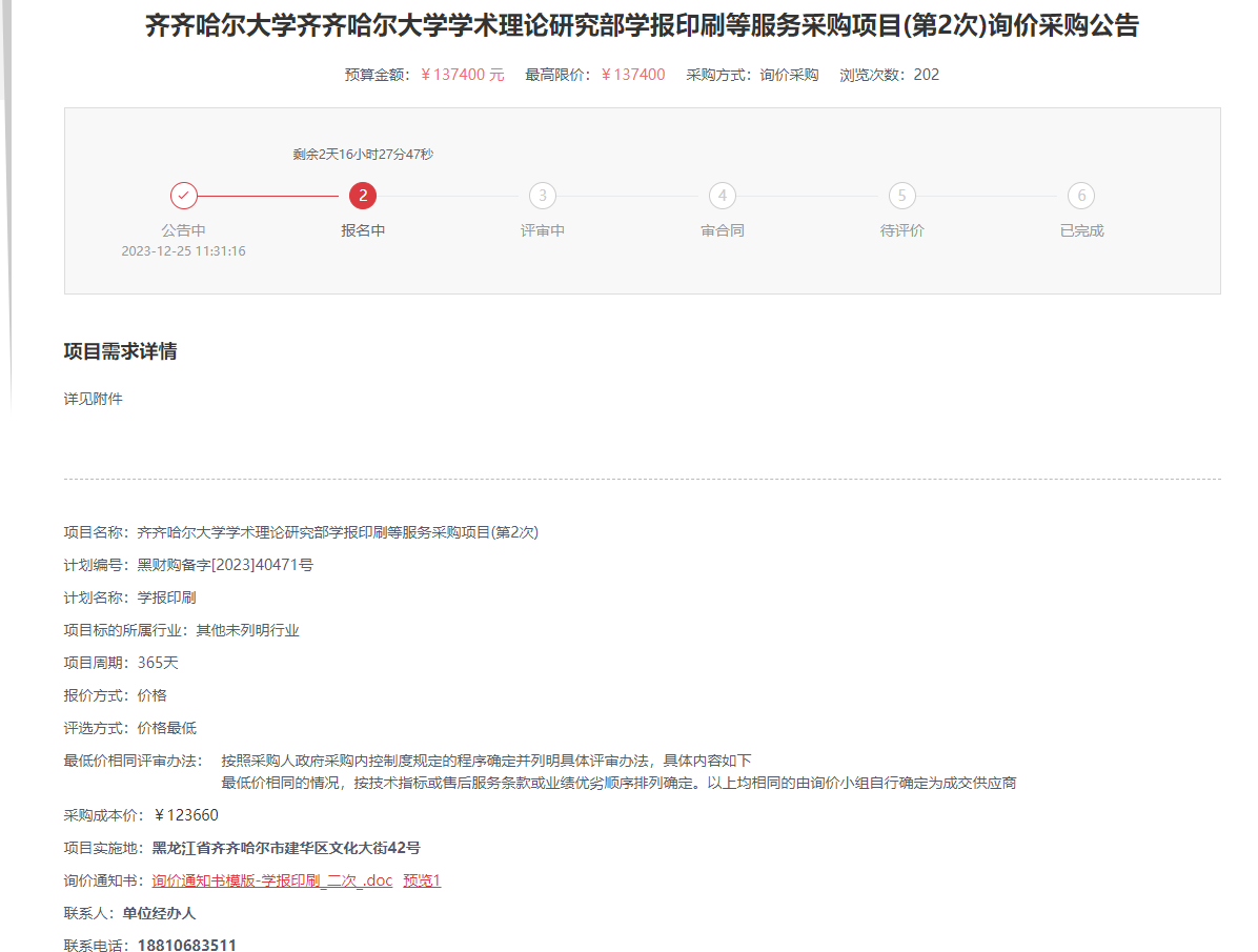 上一条:齐齐哈尔大学报废资产处置评估服务项目(第2次)询价采购公告(转自黑龙江省政府采购网)