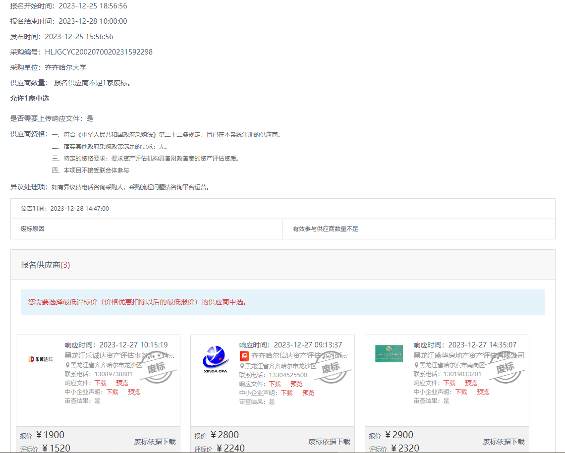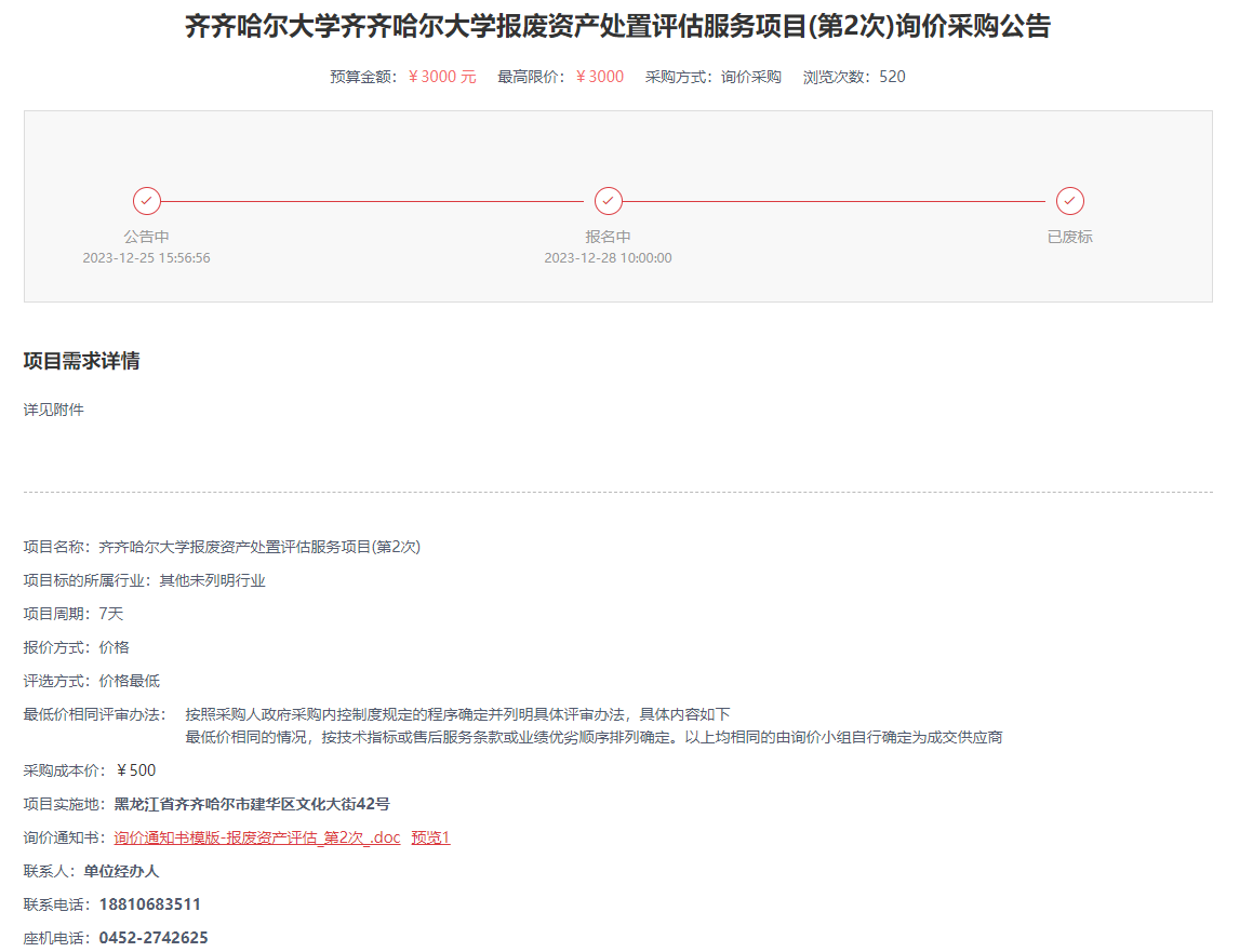 上一条:齐齐哈尔大学报废资产处置评估服务项目(第3次)询价采购公告(转自黑龙江省政府采购网)