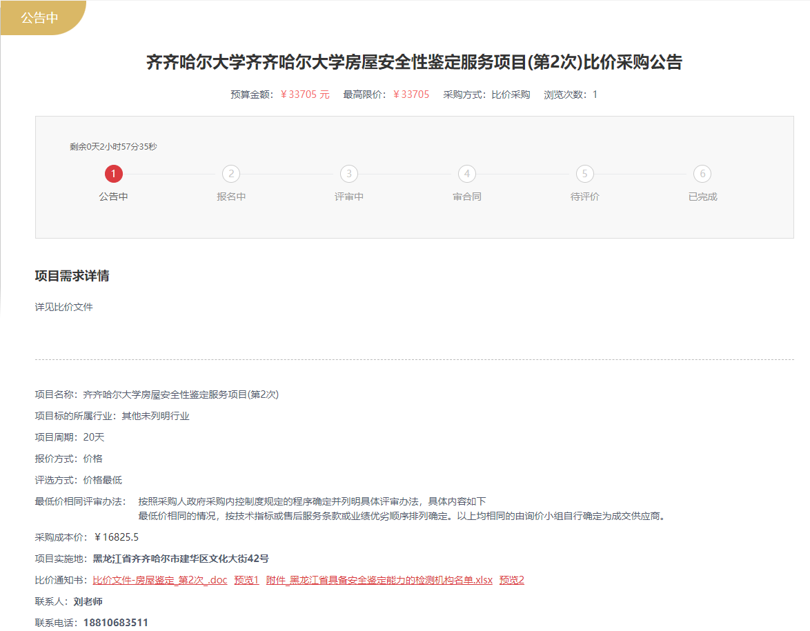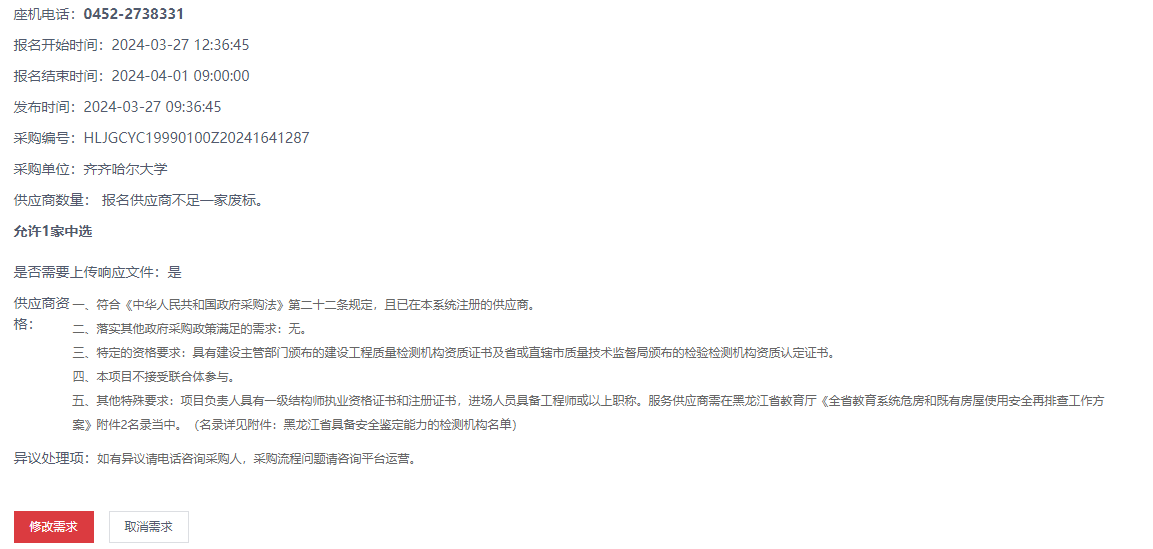 下一条:齐齐哈尔大学房屋安全性鉴定服务项目比价采购公告(转自黑龙江省政府采购网)