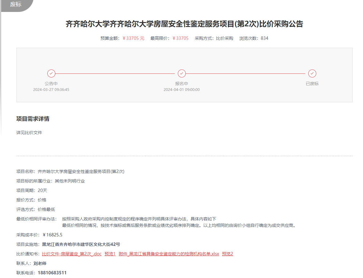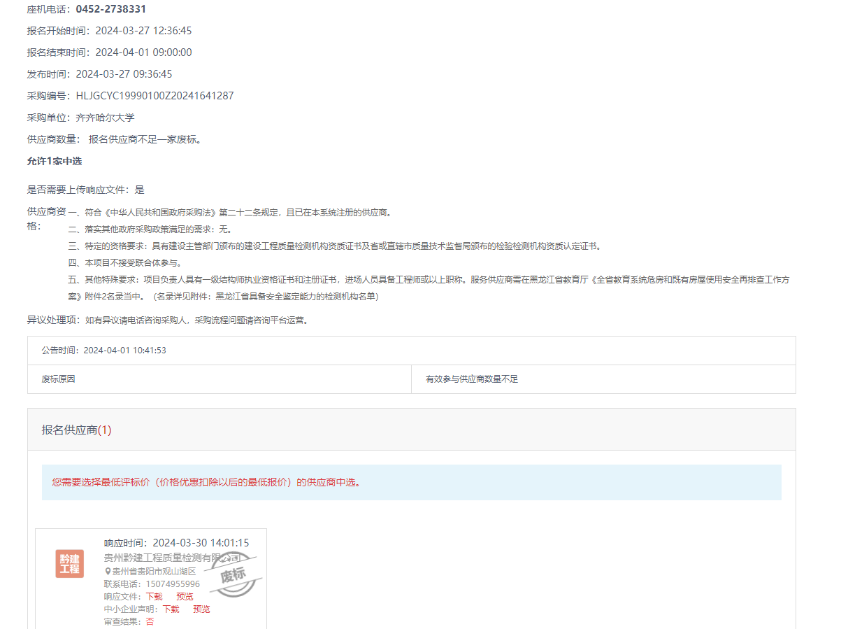 上一条:齐齐哈尔大学房屋安全性鉴定服务项目直购(转自黑龙江省政府采购网)