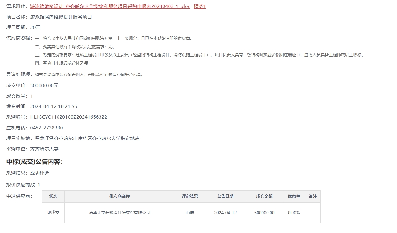 上一条:齐齐哈尔大学房屋安全性鉴定服务项目直购(转自黑龙江省政府采购网)