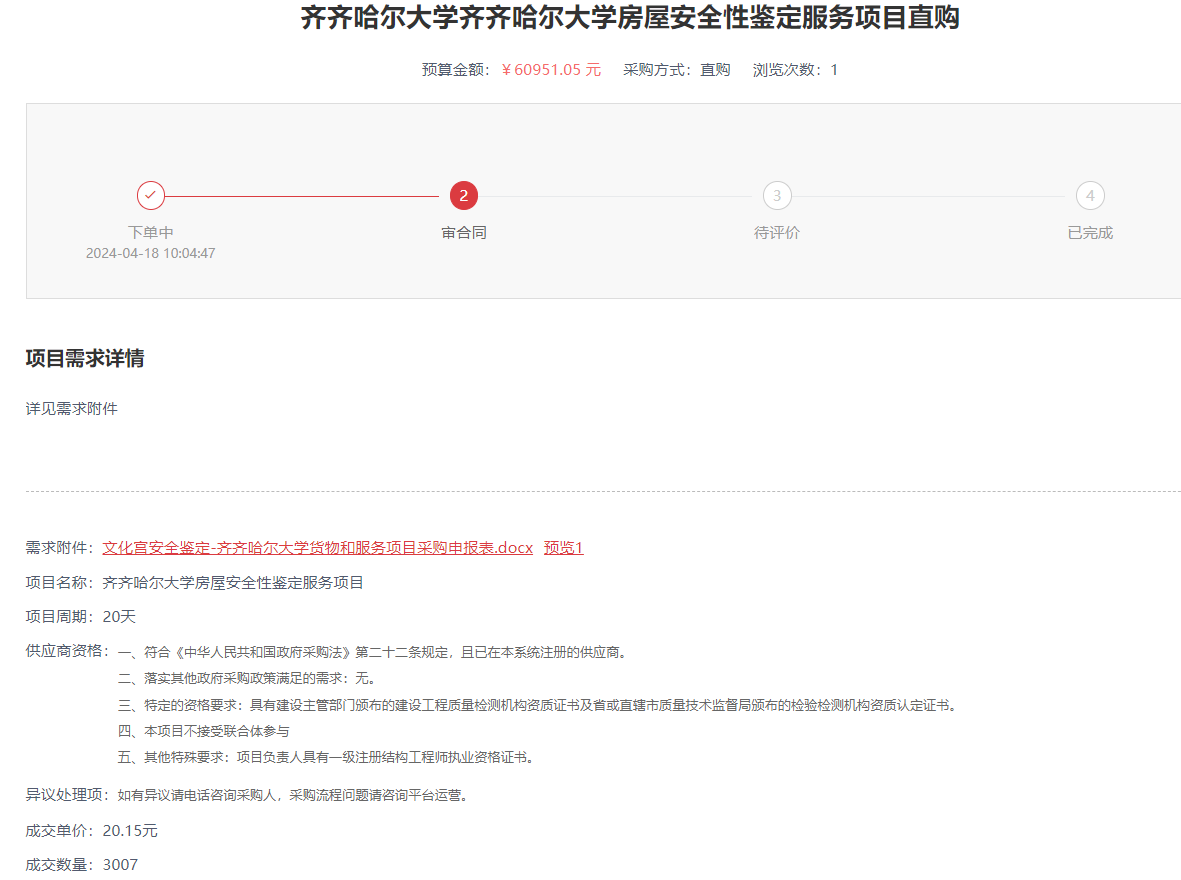 齐齐哈尔大学房屋安全性鉴定服务项目直购(转自黑龙江省政府采购网)