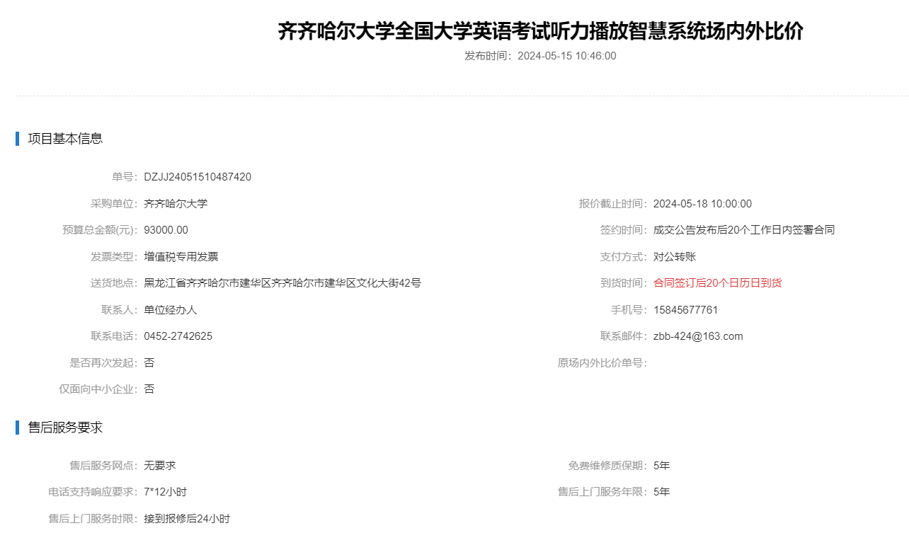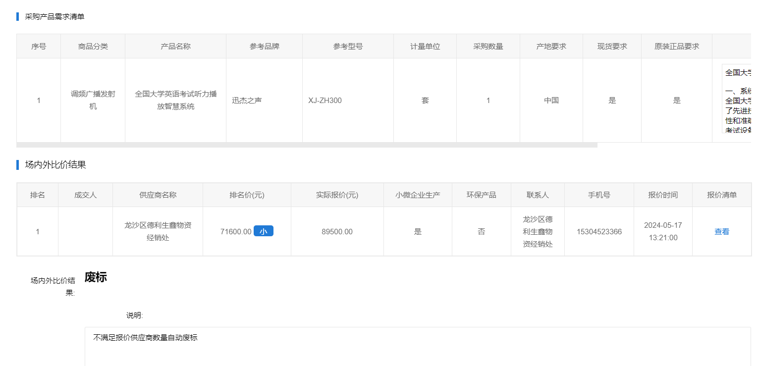 下一条:齐齐哈尔大学全国大学英语考试听力播放智慧系统场内外比价(转自黑龙江省政府采购网)