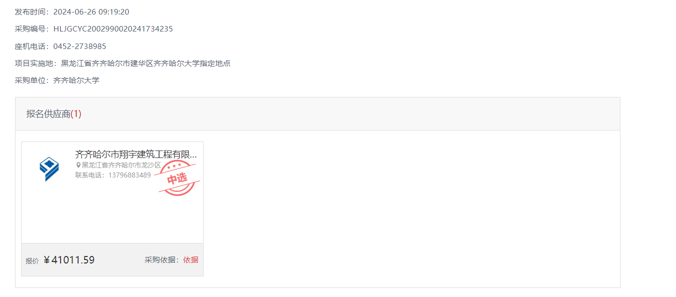下一条:齐齐哈尔大学计算机与控制工程学院及教师教育学院实验杂品采购项目包2(二次)成交公告(转自中国政府采购网)