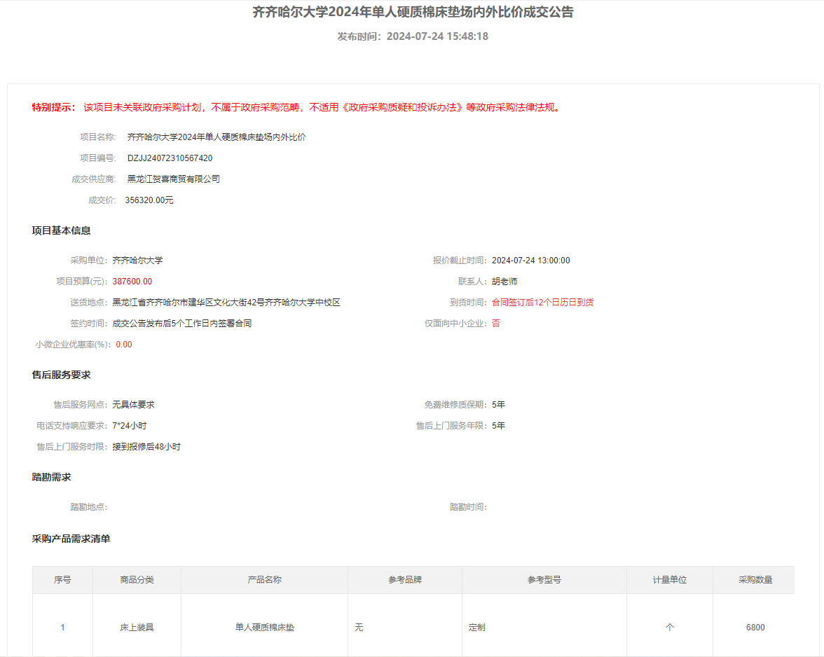上一条:齐齐哈尔大学2024年床上用品(内芯类)采购项目成交公告(转自中国政府采购网)