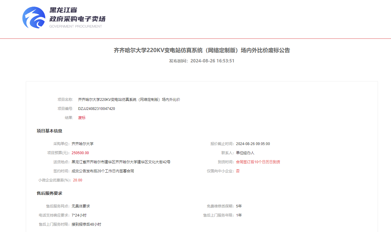 上一条:齐齐哈尔大学220KV变电站仿真系统(网络定制版)场内外比价需求公告(二次)(转自黑龙江省政府采购网)
