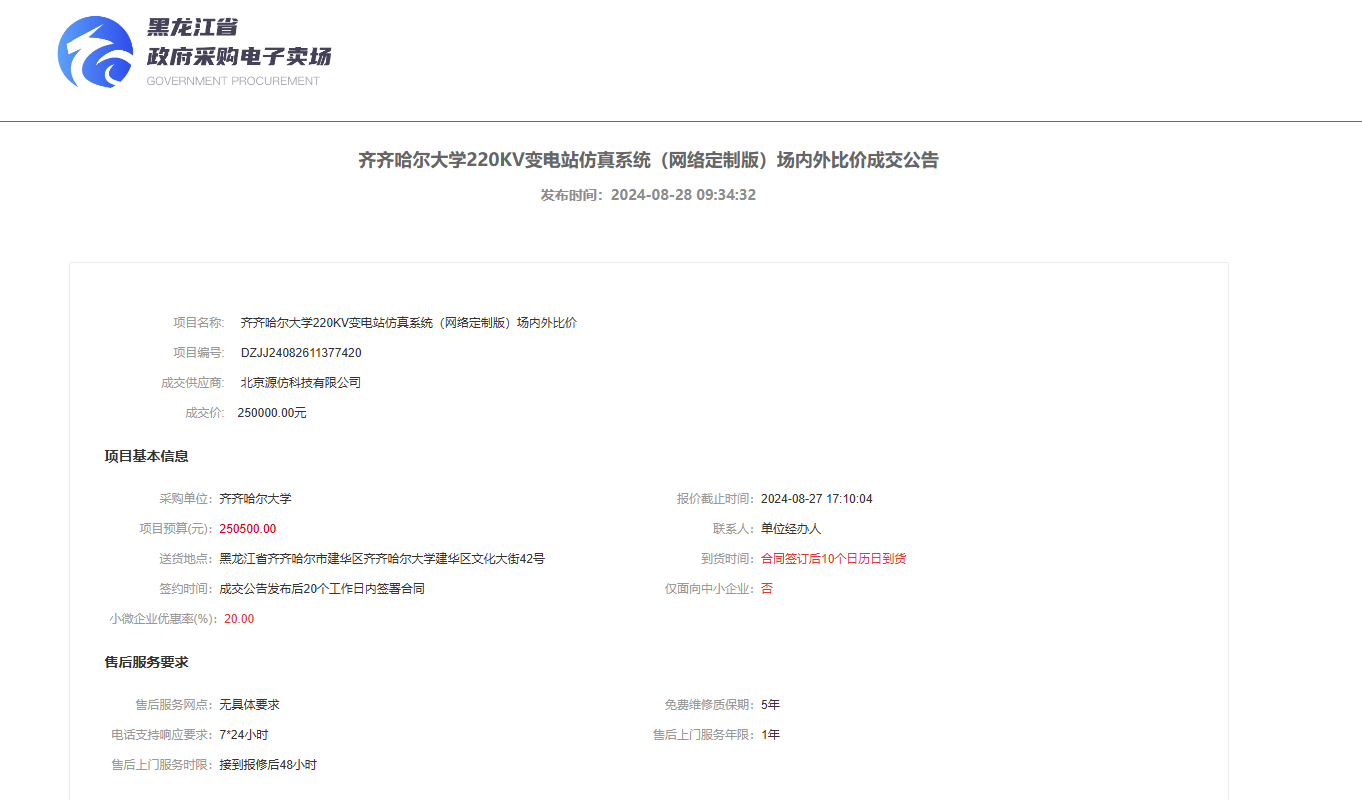 下一条:齐齐哈尔大学220KV变电站仿真系统(网络定制版)场内外比价需求公告(二次)(转自黑龙江省政府采购网)