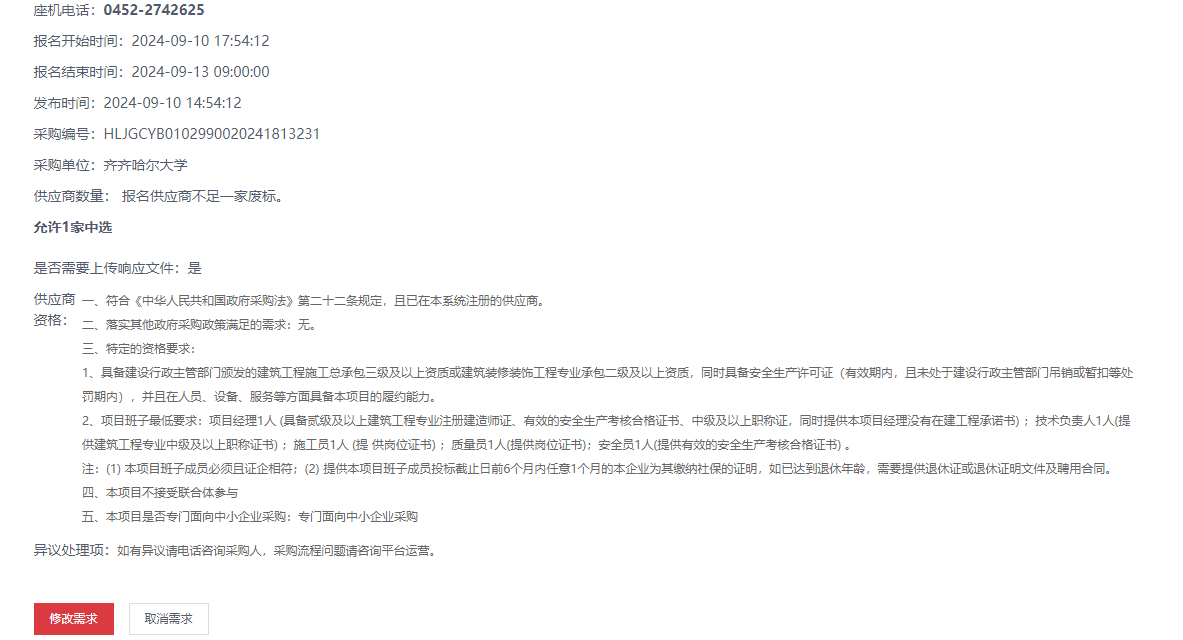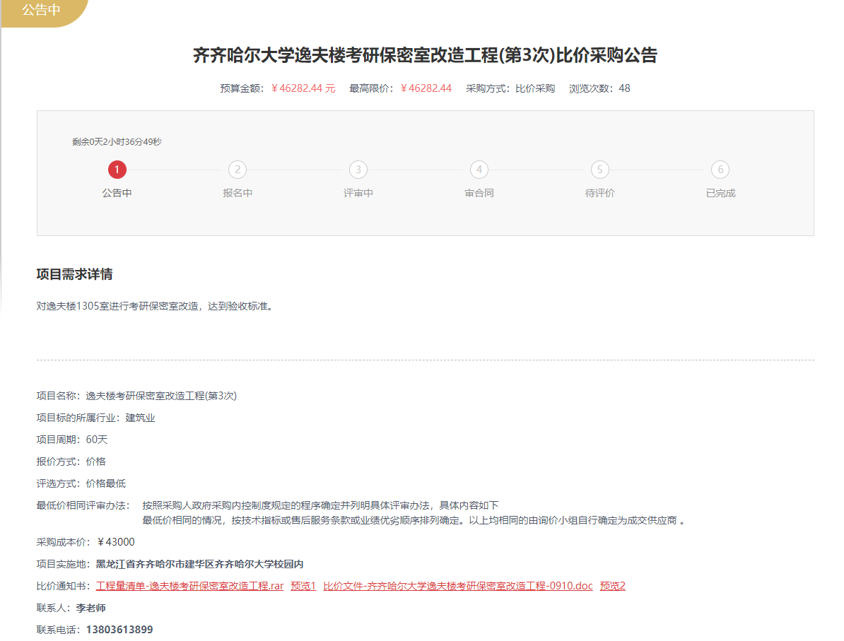 下一条:齐齐哈尔大学逸夫楼考研保密室改造工程(第2次)比价采购公告(转自黑龙江省政府采购网)