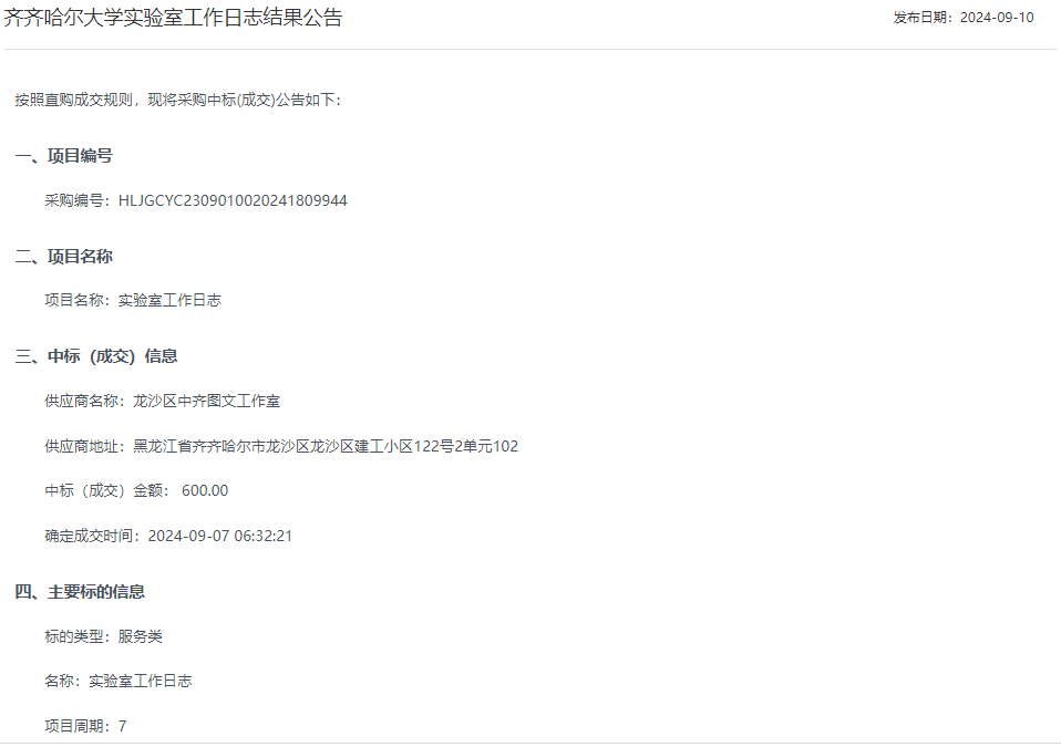 下一条:齐齐哈尔大学实验室安全手册结果公告(转自黑龙江省政府采购网)