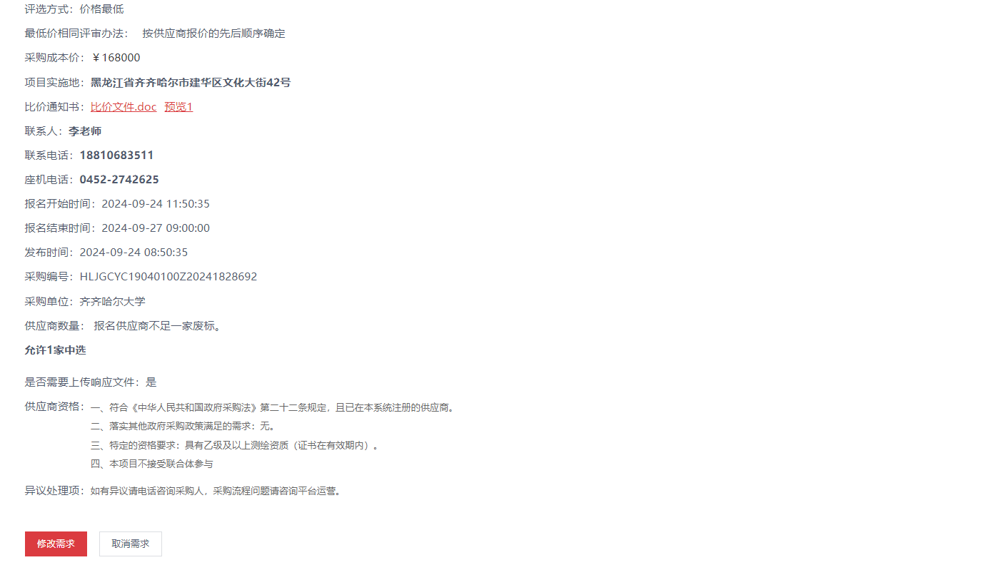 下一条:齐齐哈尔大学逸夫楼考研保密室改造工程(第4次)比价采购公告(转自黑龙江省政府采购网)