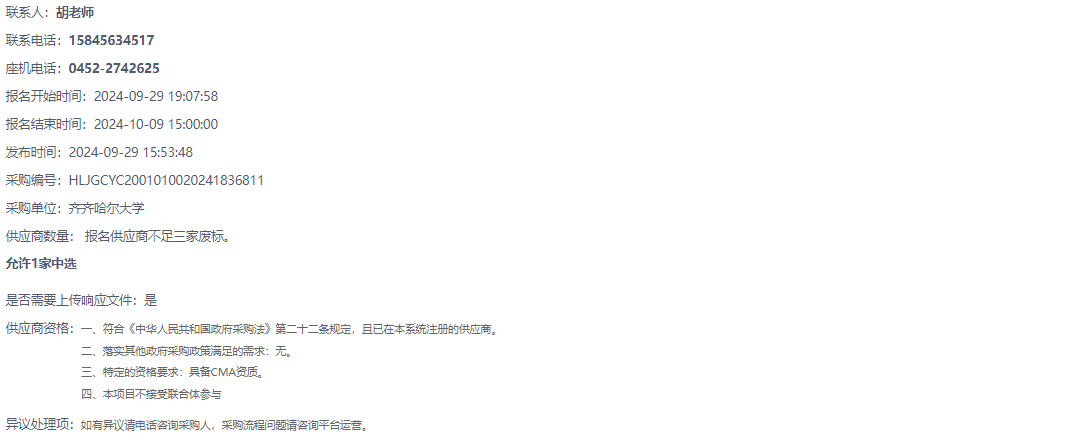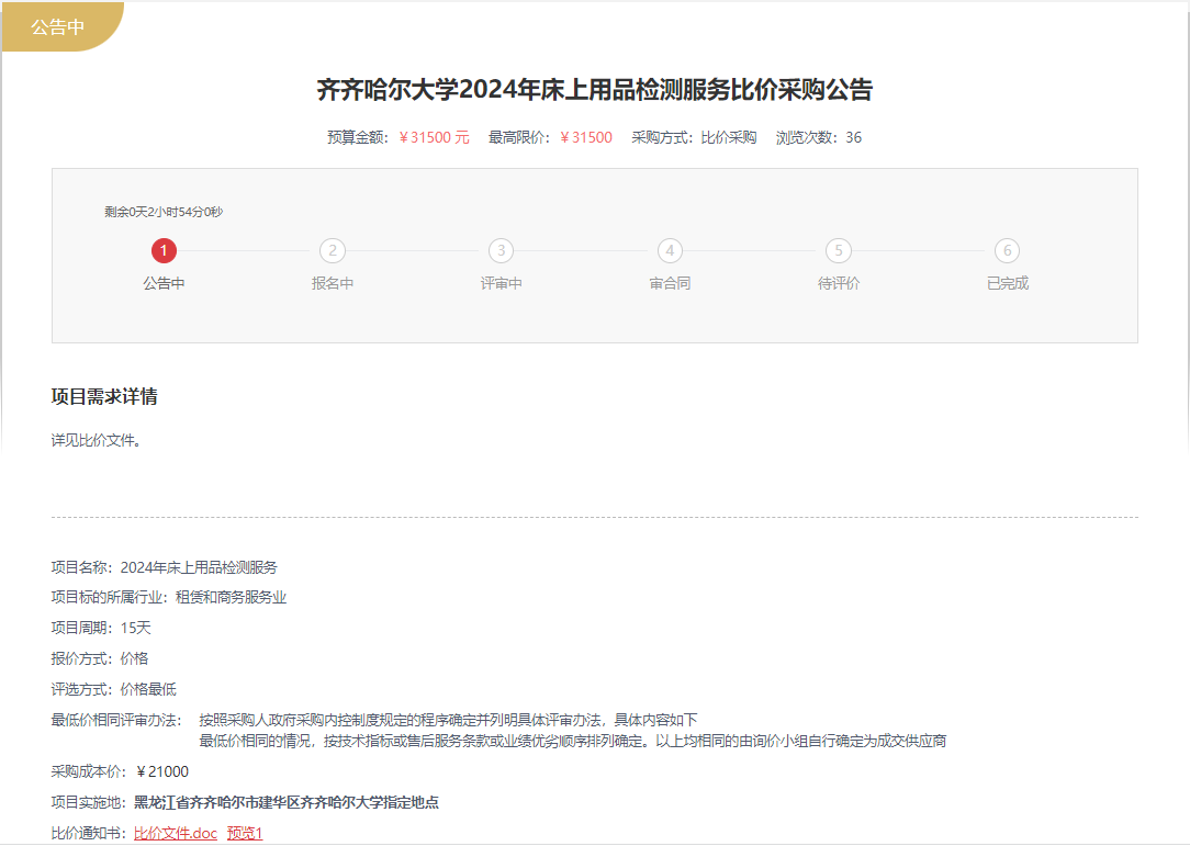上一条:齐齐哈尔大学医疗器械场内外比价(第一次废标)(转自黑龙江省政府采购网)