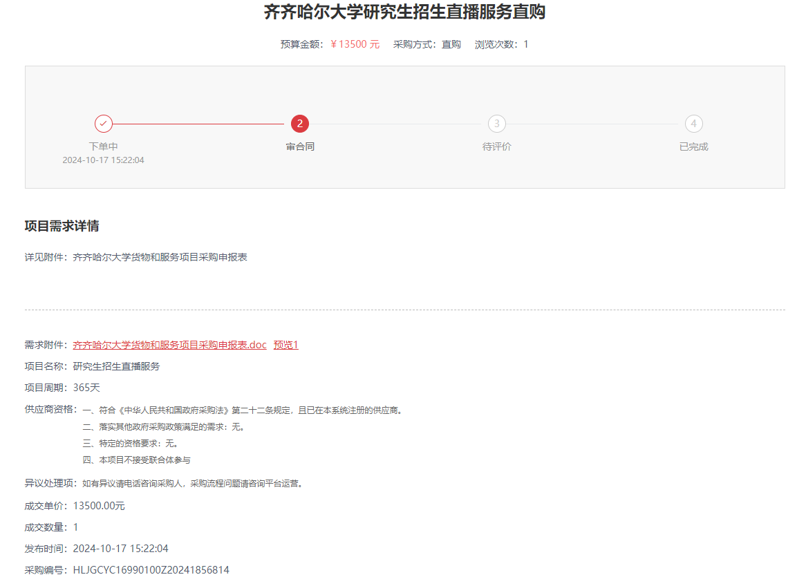 齐齐哈尔大学研究生招生直播服务直购(转自黑龙江政府采购网)