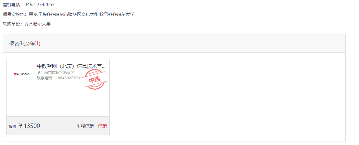 齐齐哈尔大学文化宫维修加固项目结果公告(转自黑龙江省政府采购网)