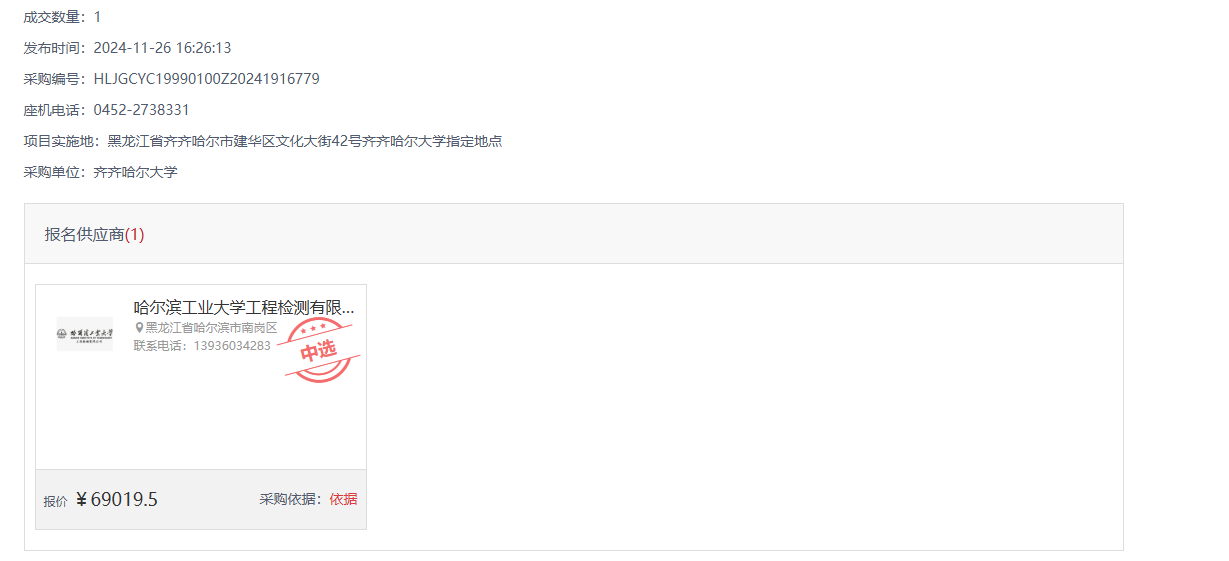上一条:齐齐哈尔大学维修材料采购项目(第二批)(二次)询价公告(转自中国政府采购网)