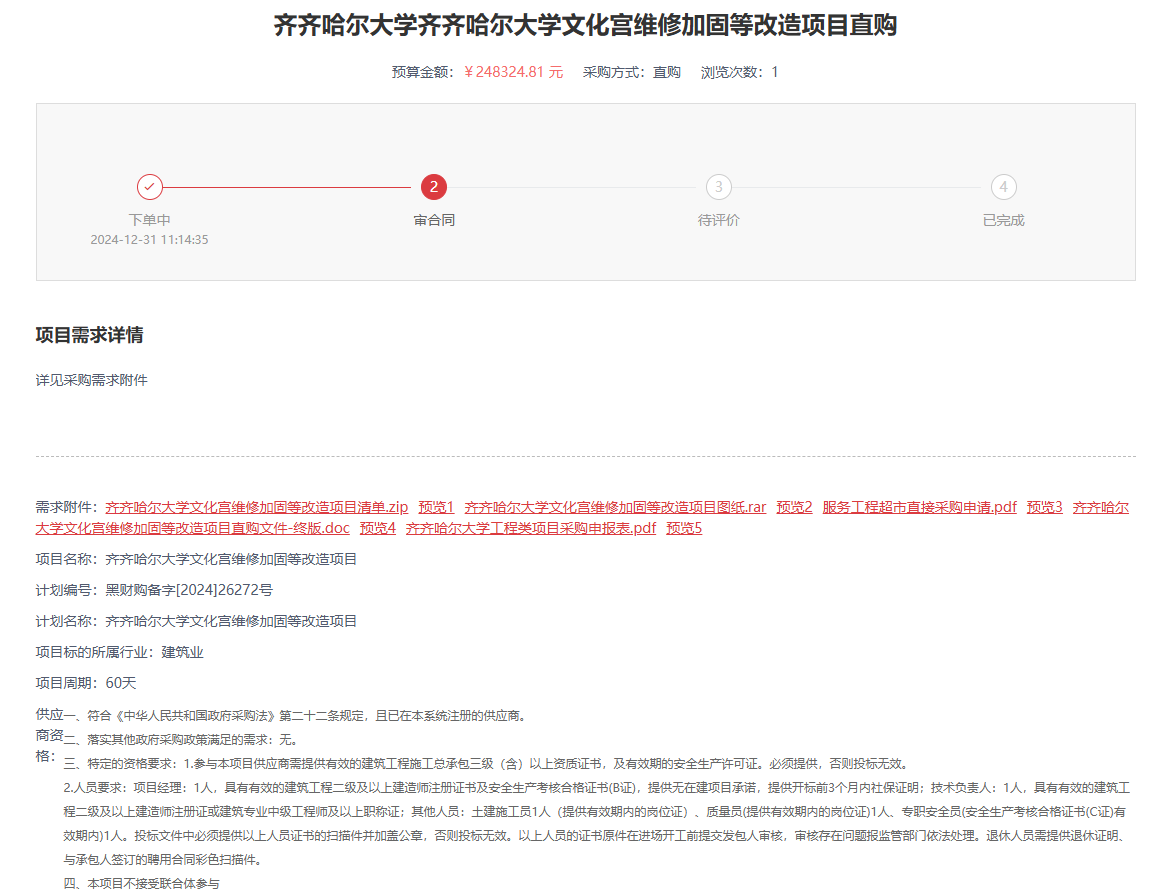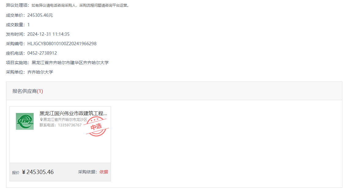 下一条:齐齐哈尔大学文化宫维修加固等项目竣工结算审核服务(四次)竞争性磋商(转自中国政府采购网)