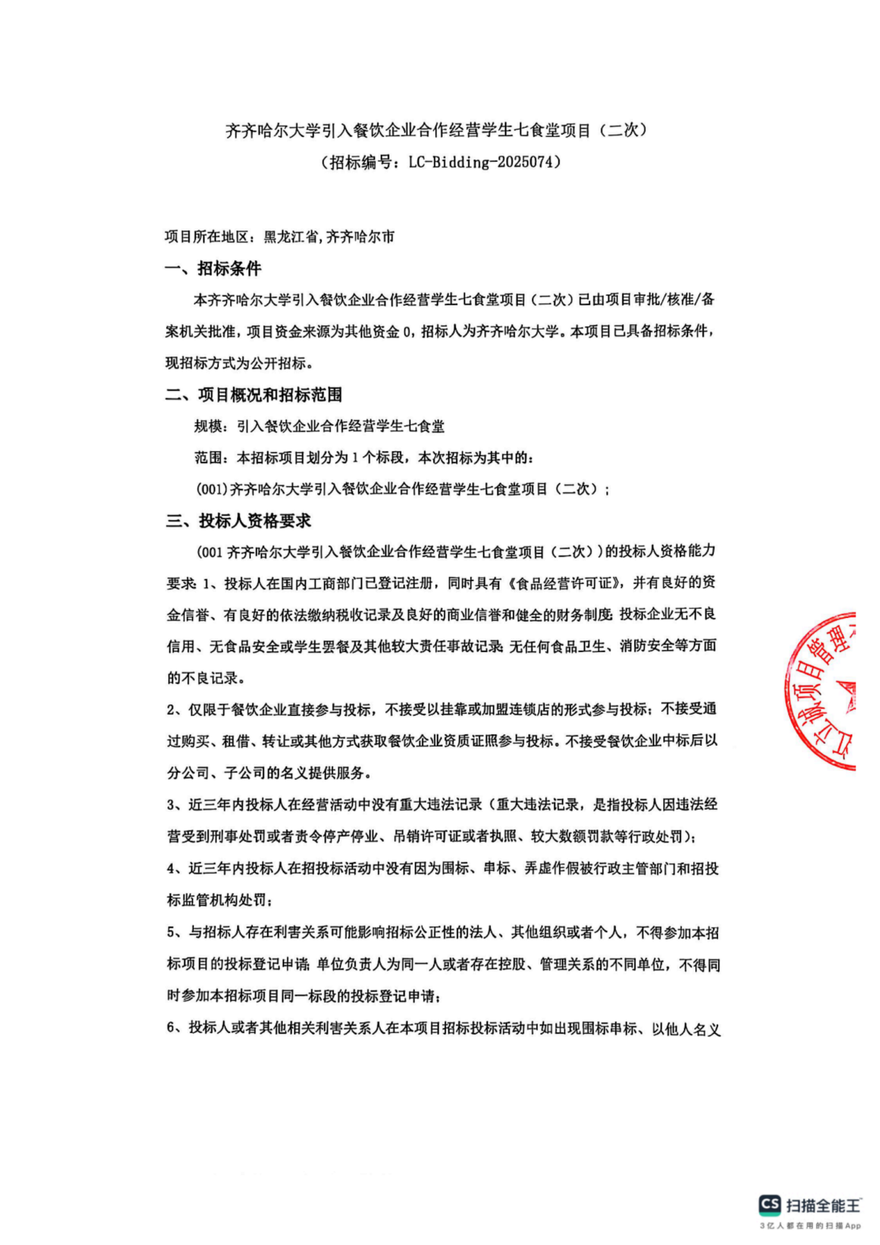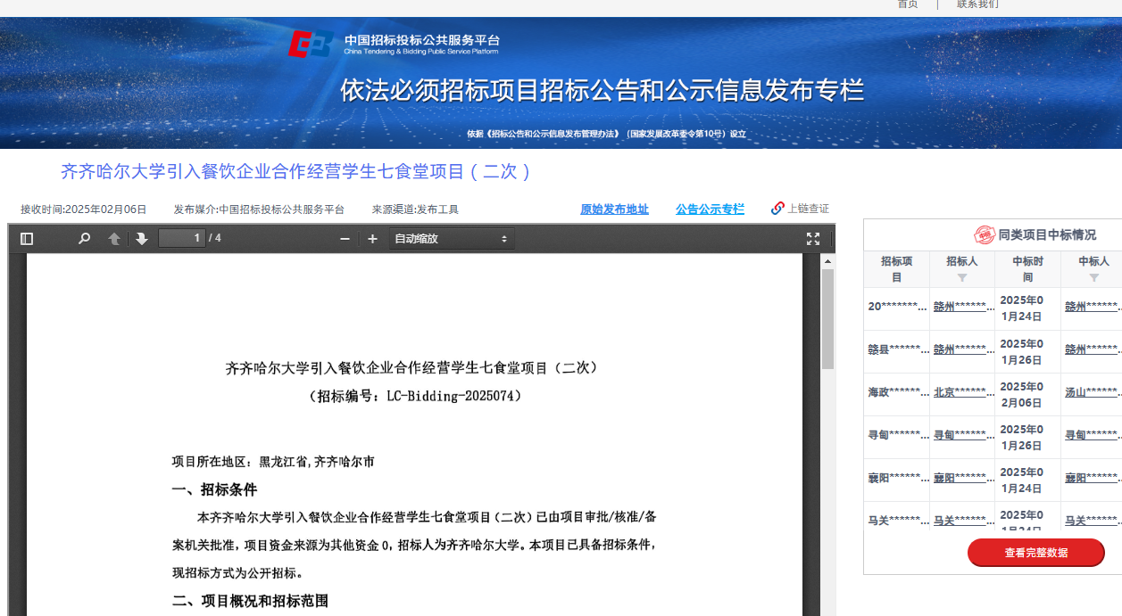 下一条:齐齐哈尔大学引入餐饮企业合作经营学生七食堂项目(转自中国招标投标公共服务平台)