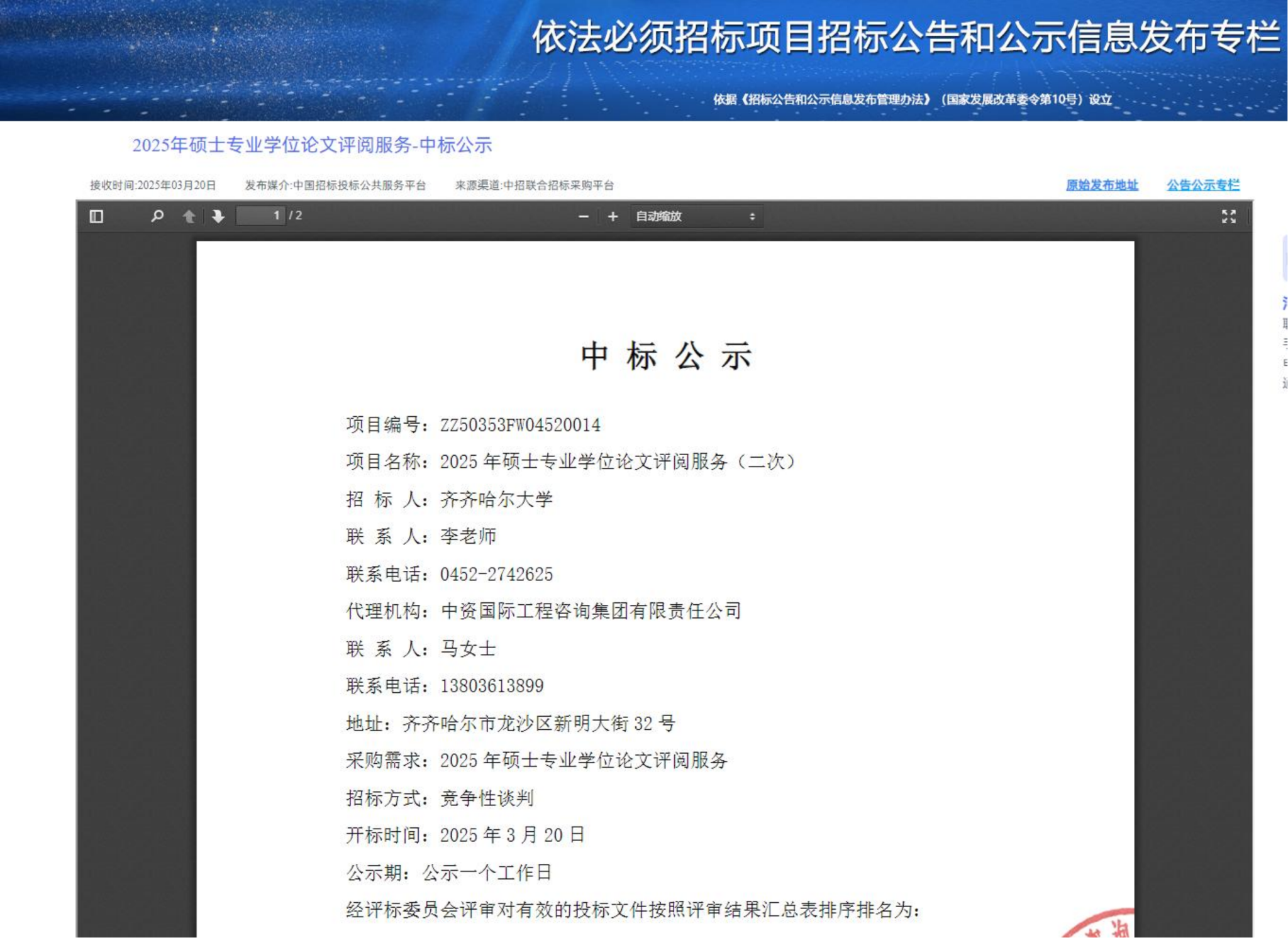 上一条:齐齐哈尔大学梅里斯农场358亩耕地评估服务比价采购公告(转自黑龙江省政府采购网)