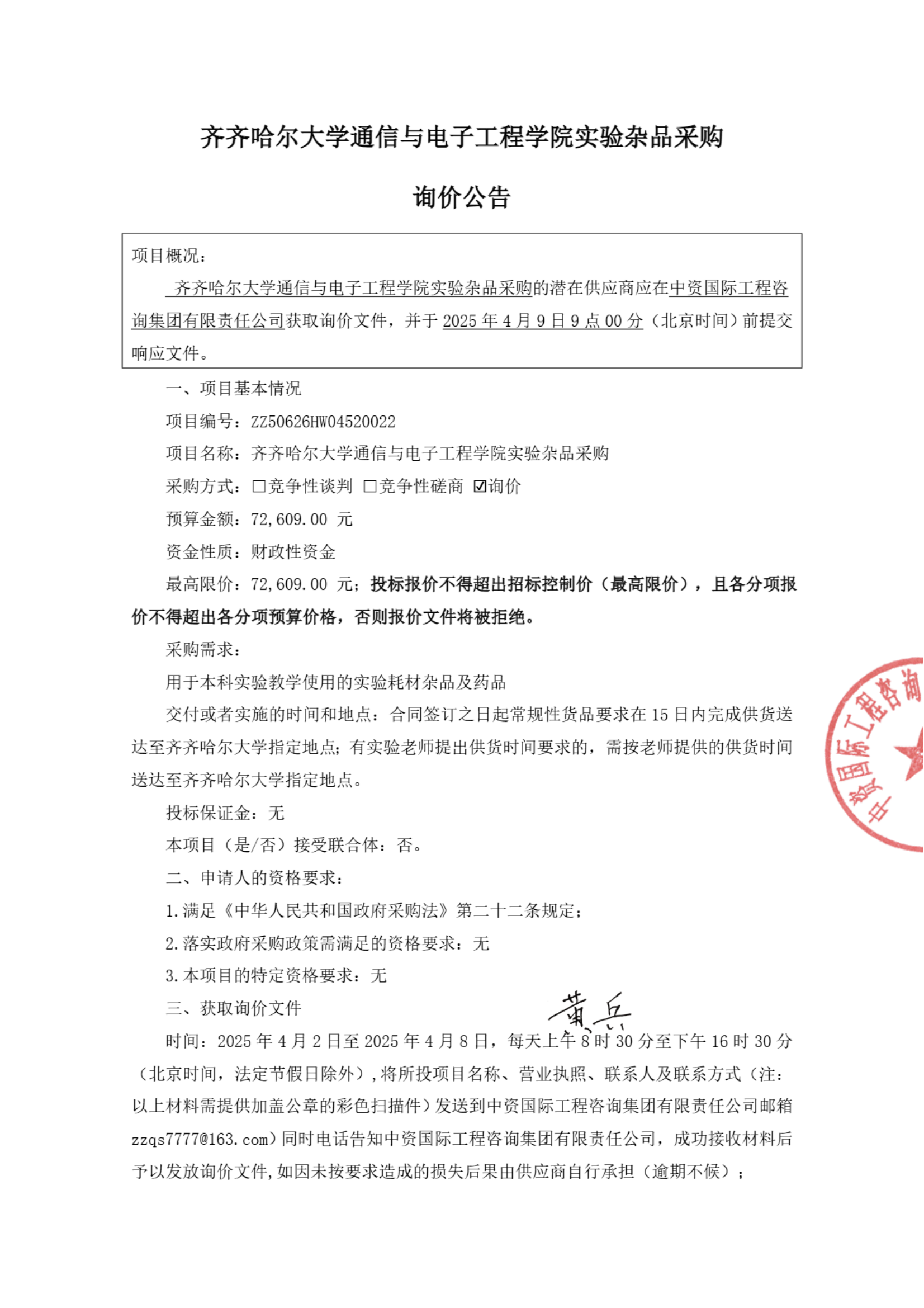 下一条:齐齐哈尔大学通信学院、理学院实验台采购项目结果公告(转自黑龙江省政府采购网)
