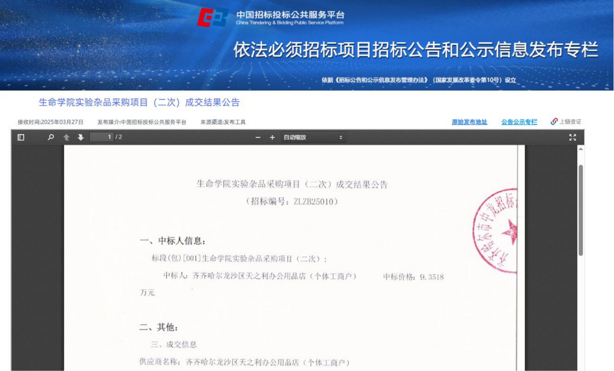 上一条:齐齐哈尔大学图书馆和金工实习厂室内外墙保温改造工程(二次)成交结果公告(转自中国招标投标公共服务平台)