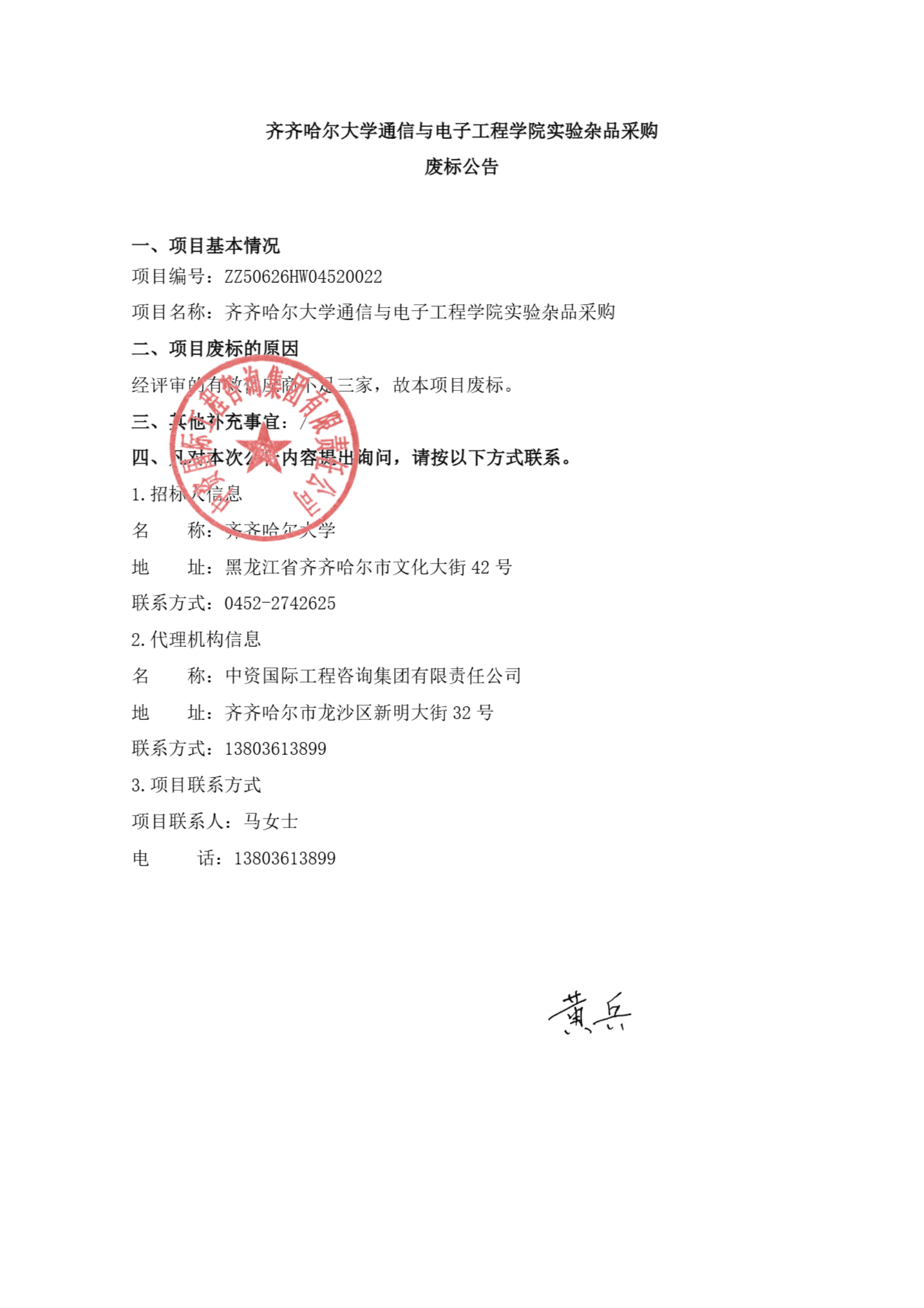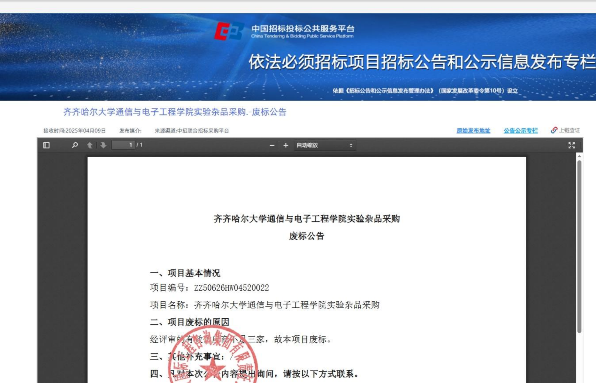 上一条:齐齐哈尔大学工程教育专业认证背景下制药工程专业实验仪器设备建设项目(一)竞争性谈判公告(转自黑龙江省政府采购网)
