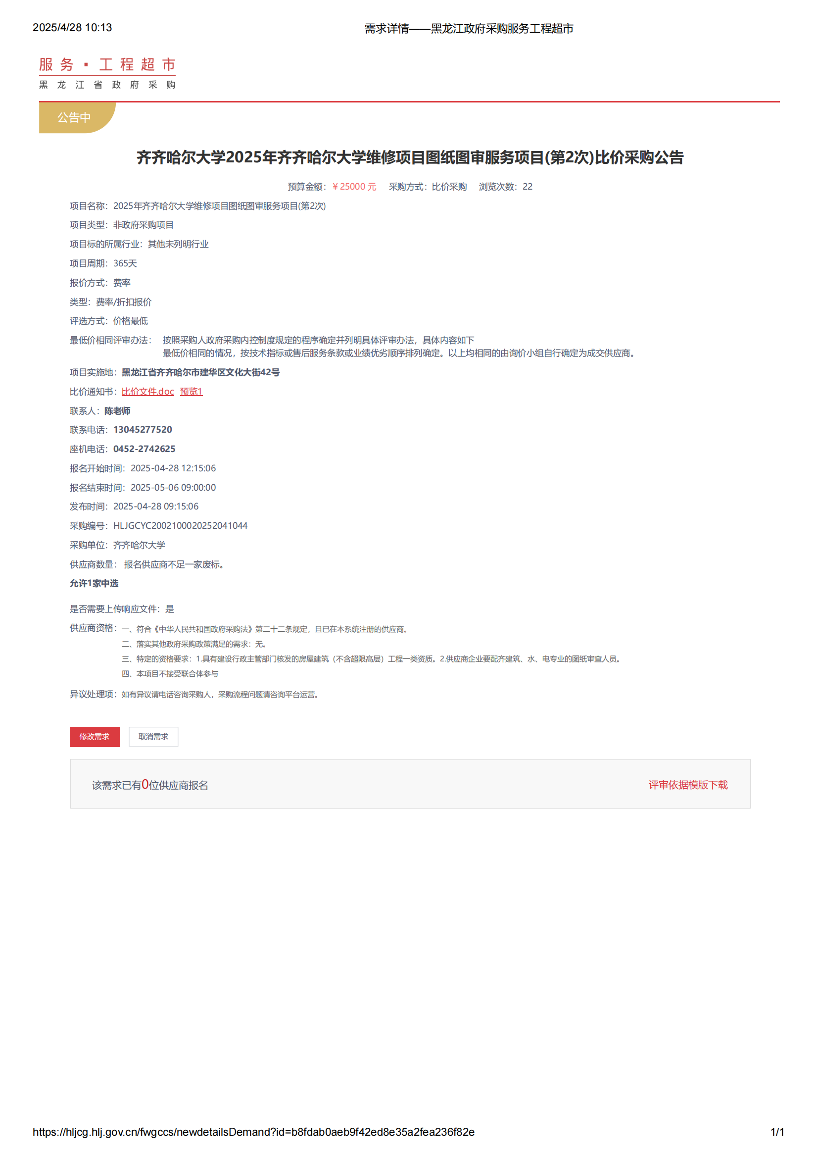 下一条:2025年齐齐哈尔大学维修项目图纸图审服务项目比价废标公告(转自黑龙江省政府采购网)