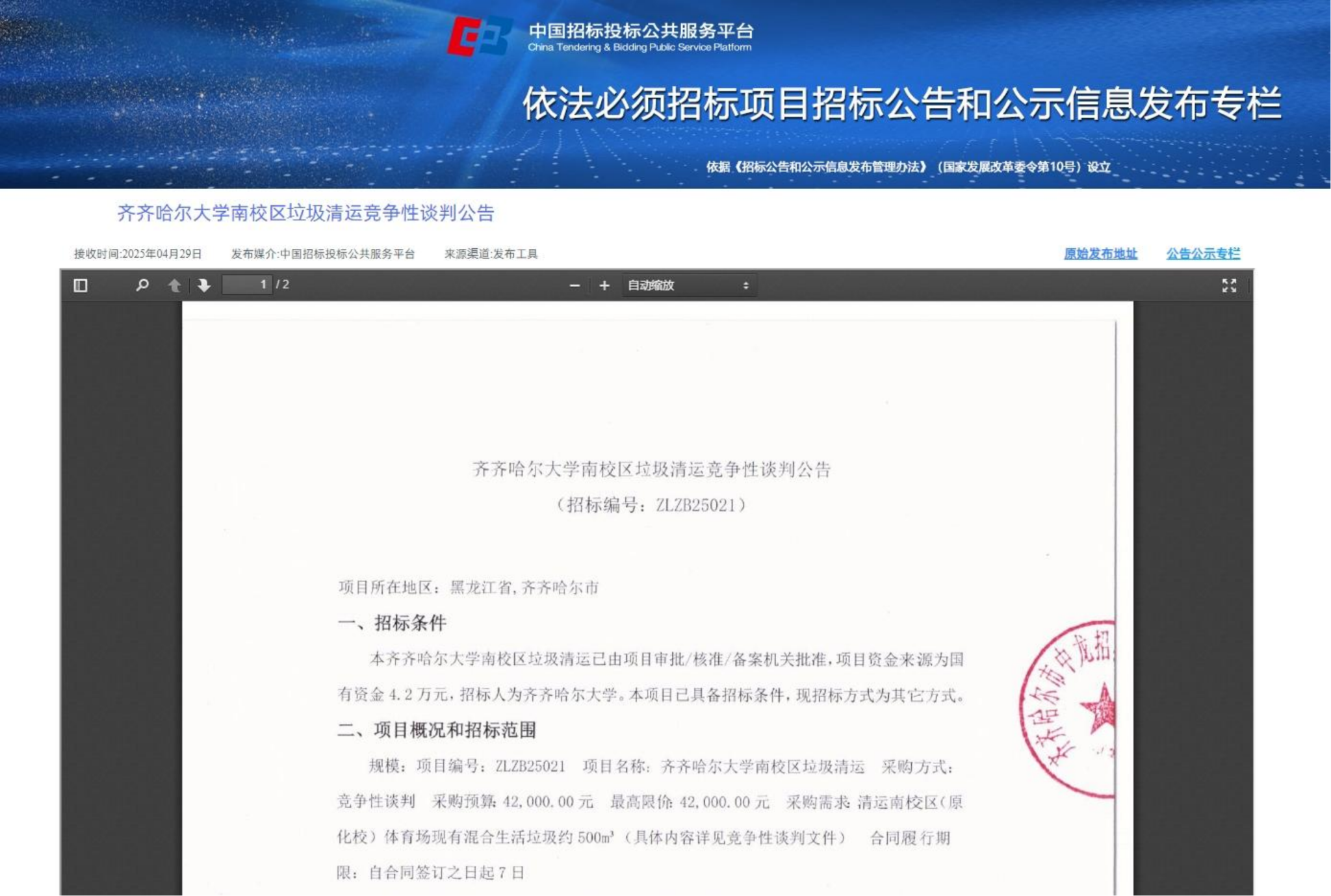 下一条:齐齐哈尔大学2025年硕士学位论文评阅服务采购实行单一来源采购方式的公示(转自黑龙江省政府采购网)