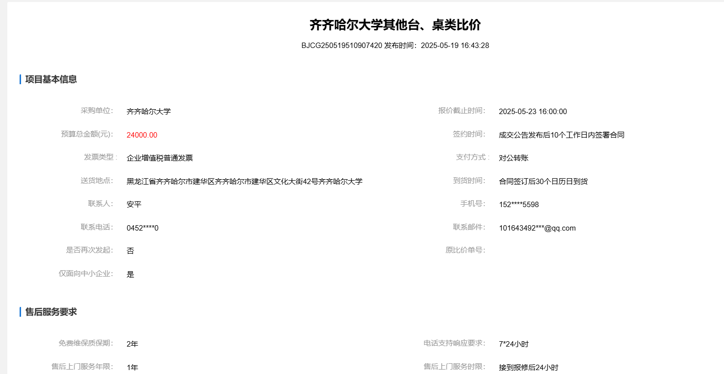 下一条:齐齐哈尔大学教学、实验椅凳比价(转自黑龙江省政府采购网)