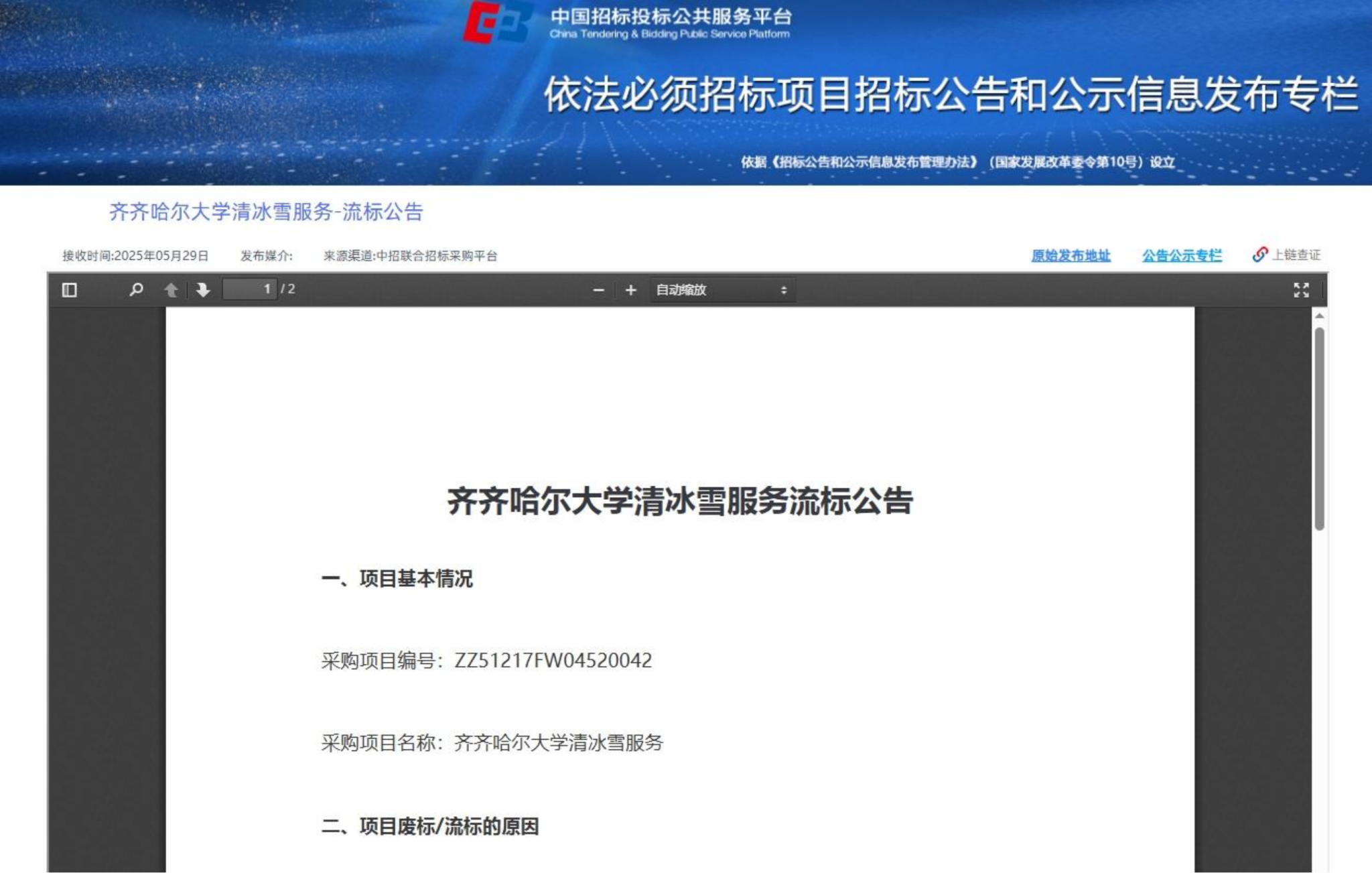 上一条:齐齐哈尔大学2026年大修预算编制、造价咨询服务项目中标结果公示(转自中国招标投标公共服务平台)