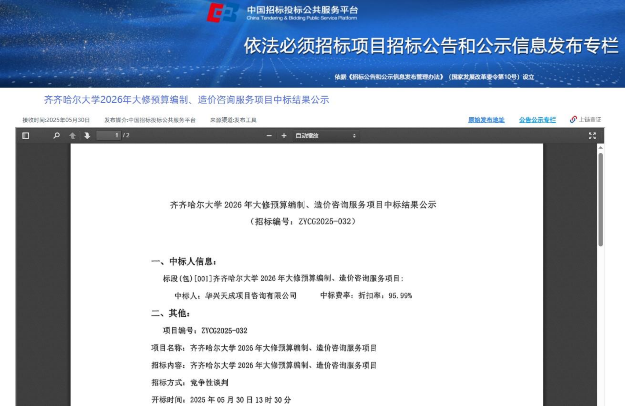 上一条:齐齐哈尔大学清冰雪服务-(二次)公告(转自中国招标投标公共服务平台)