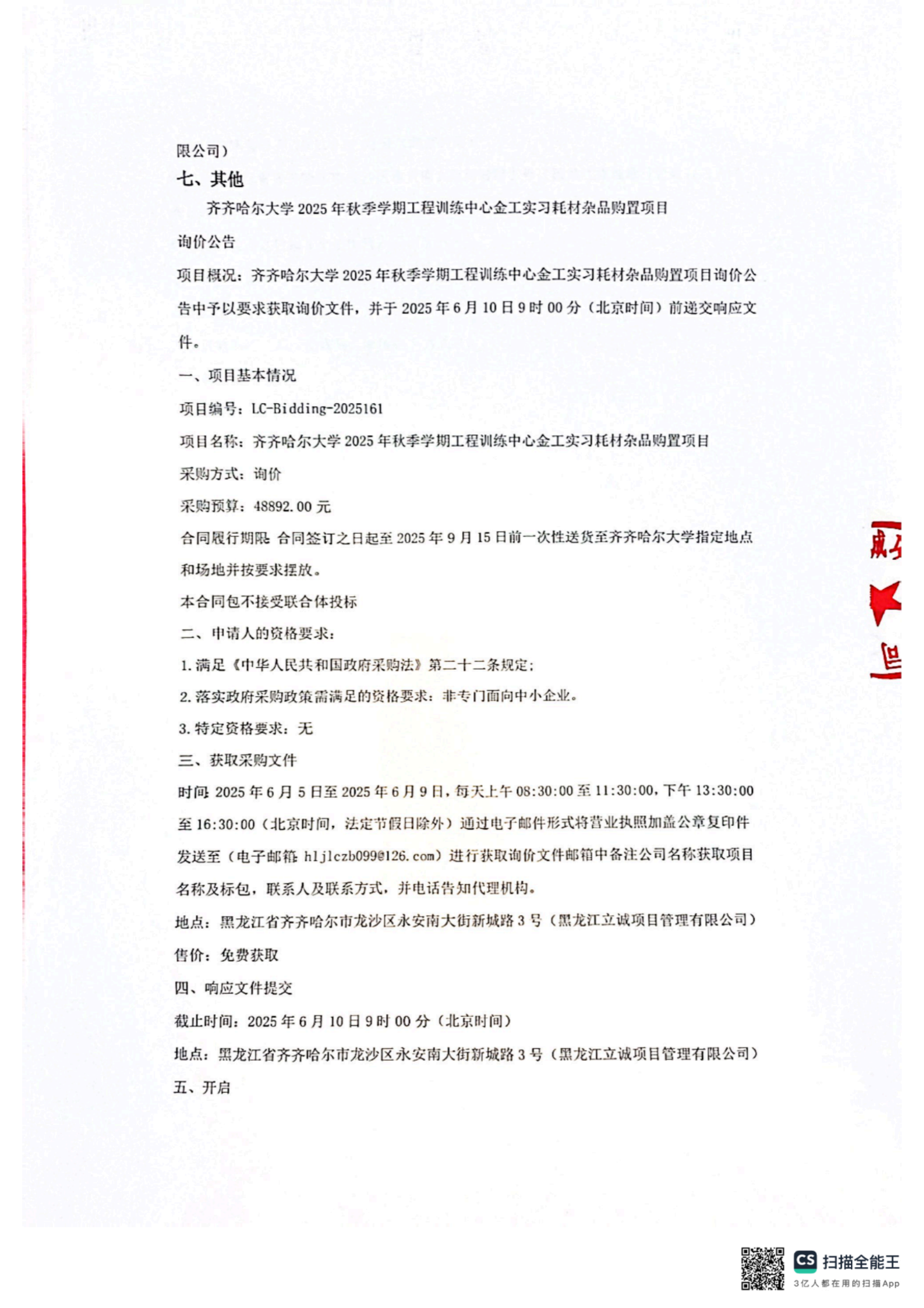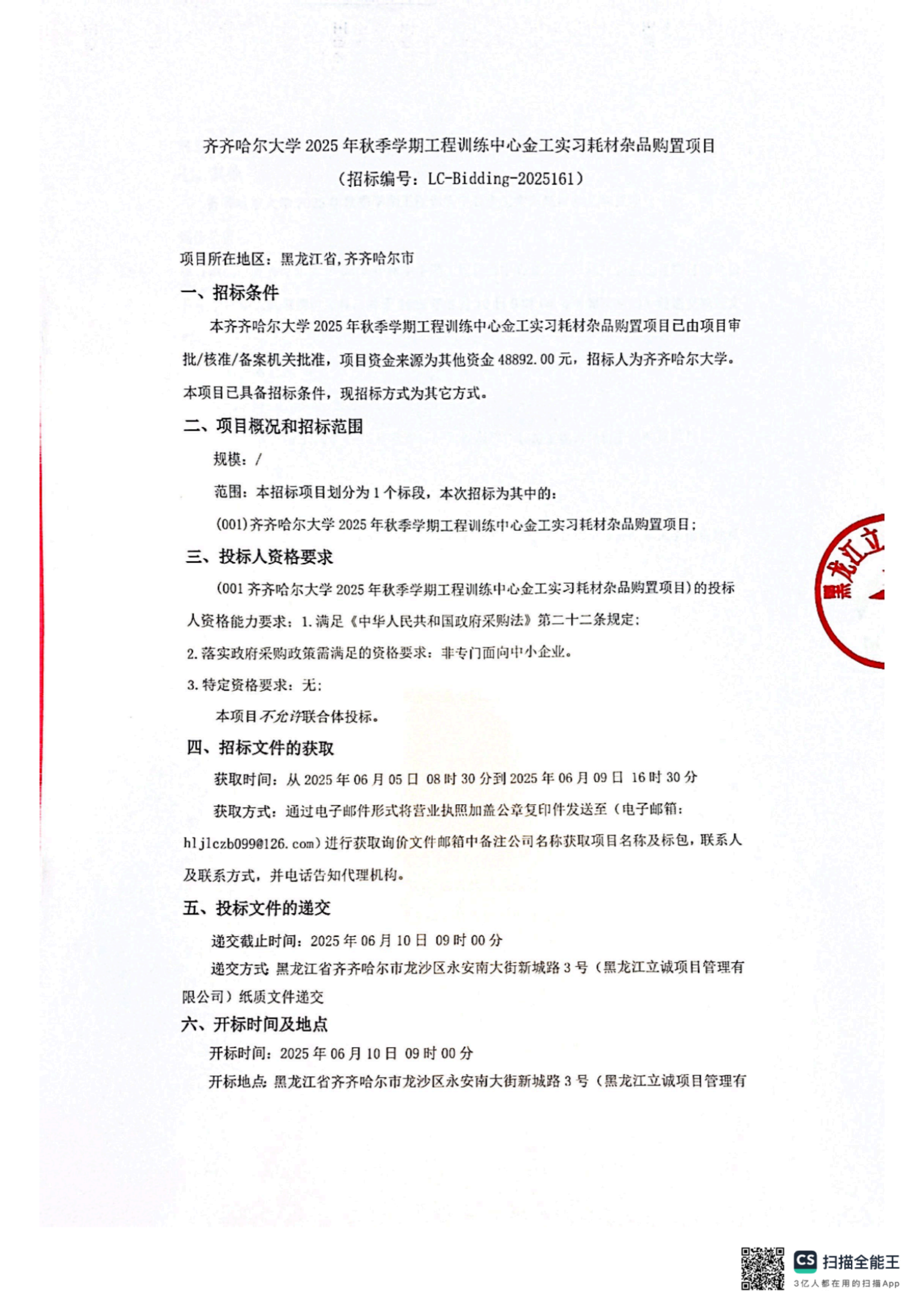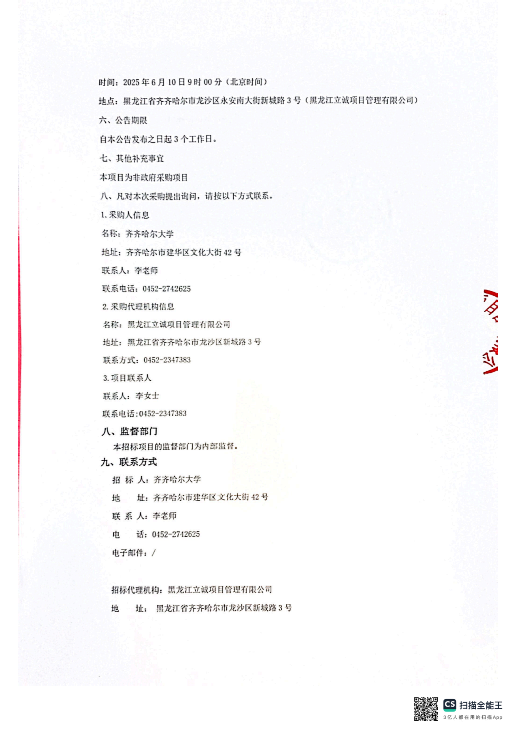 上一条:齐齐哈尔大学消控室值守服务项目中标结果公示(转自中国招标投标公共服务平台)