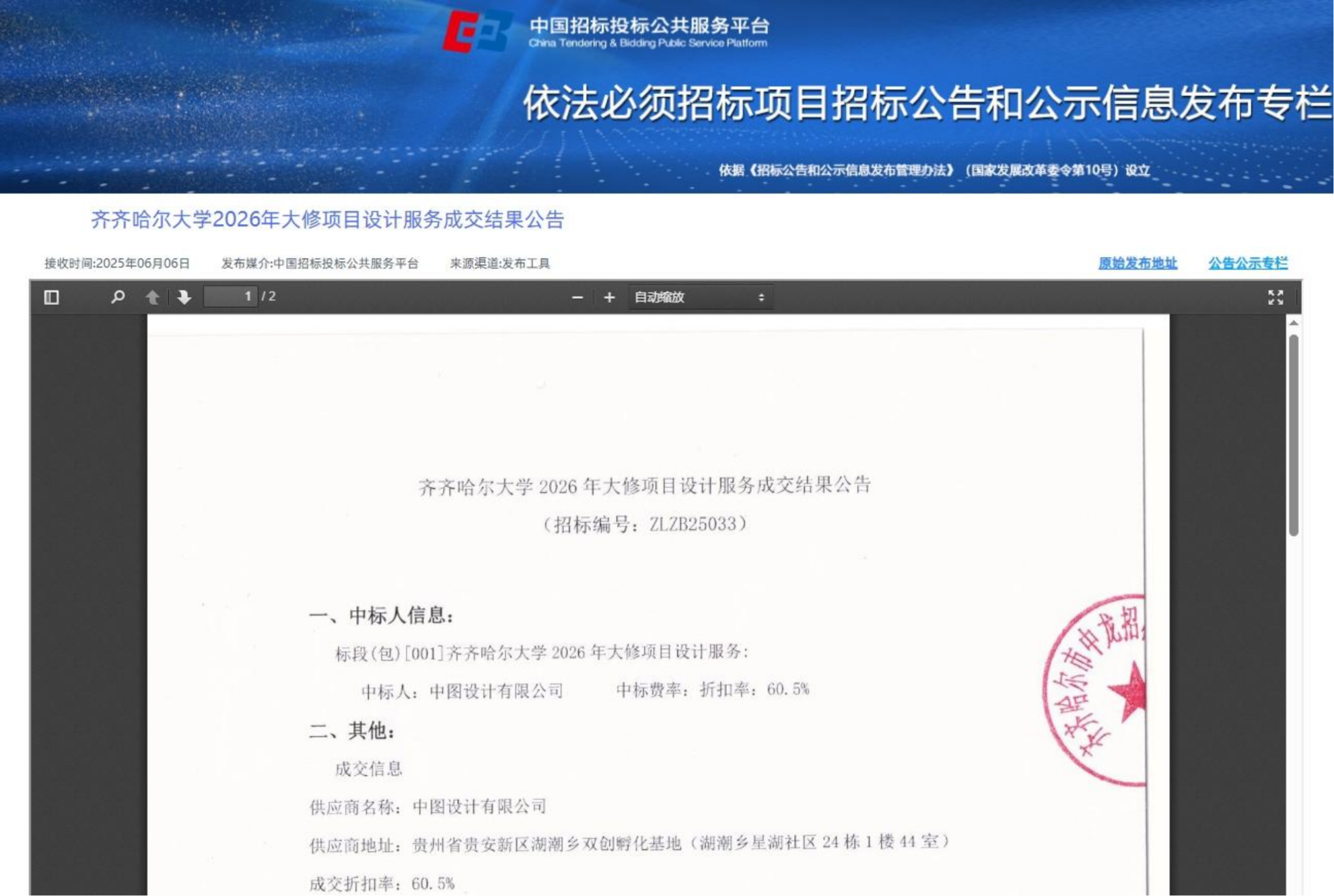 下一条:齐齐哈尔大学清冰雪服务-流标(二次)公告(转自中国招标投标公共服务平台)