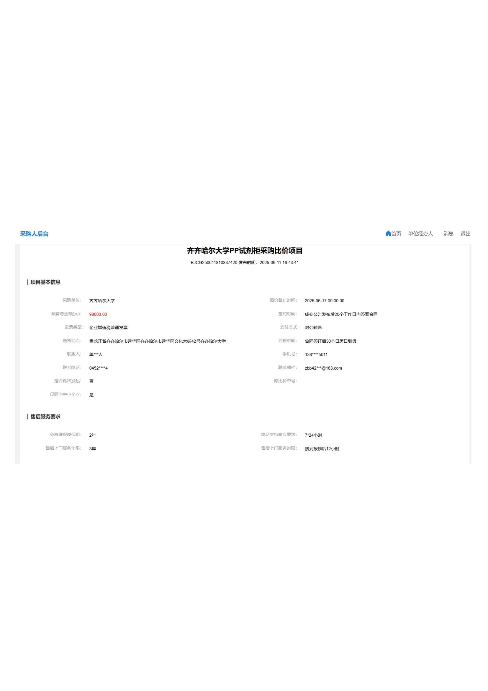 上一条:齐齐哈尔大学2025年学生公寓窗帘杆采购安装比价项目(转自黑龙江省政府采购网)