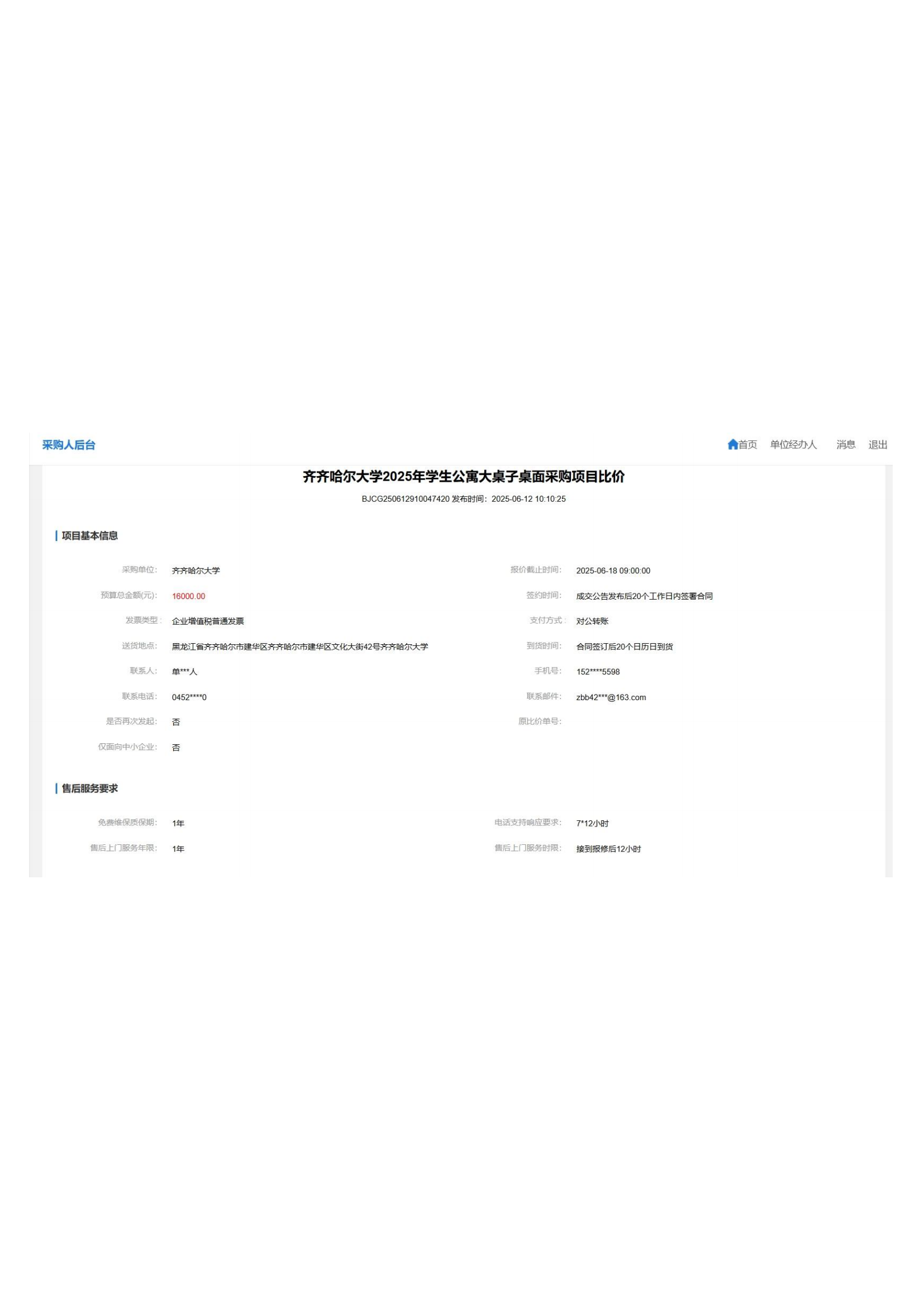 下一条:齐齐哈尔大学2025年学生公寓窗帘杆采购安装比价项目(转自黑龙江省政府采购网)