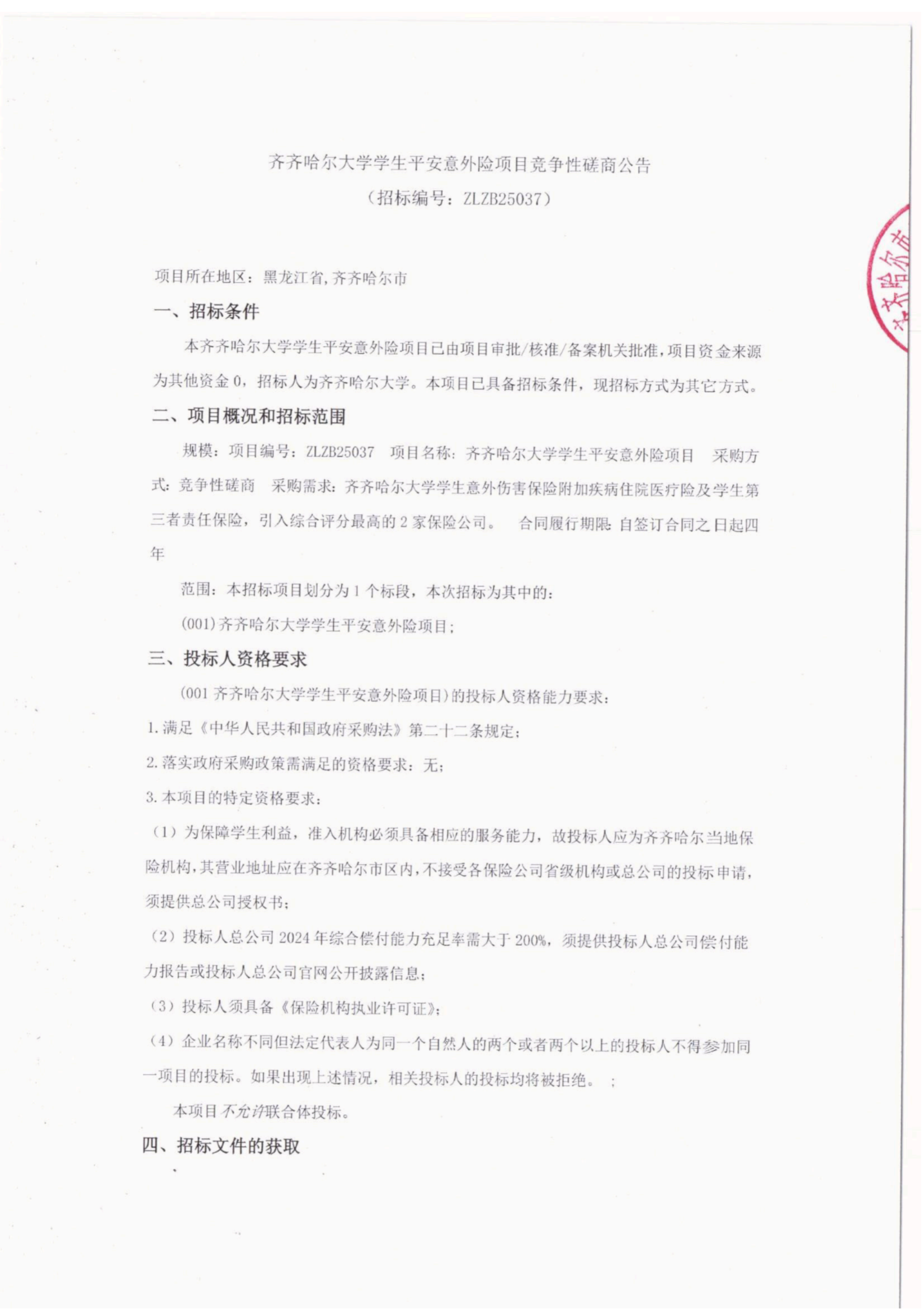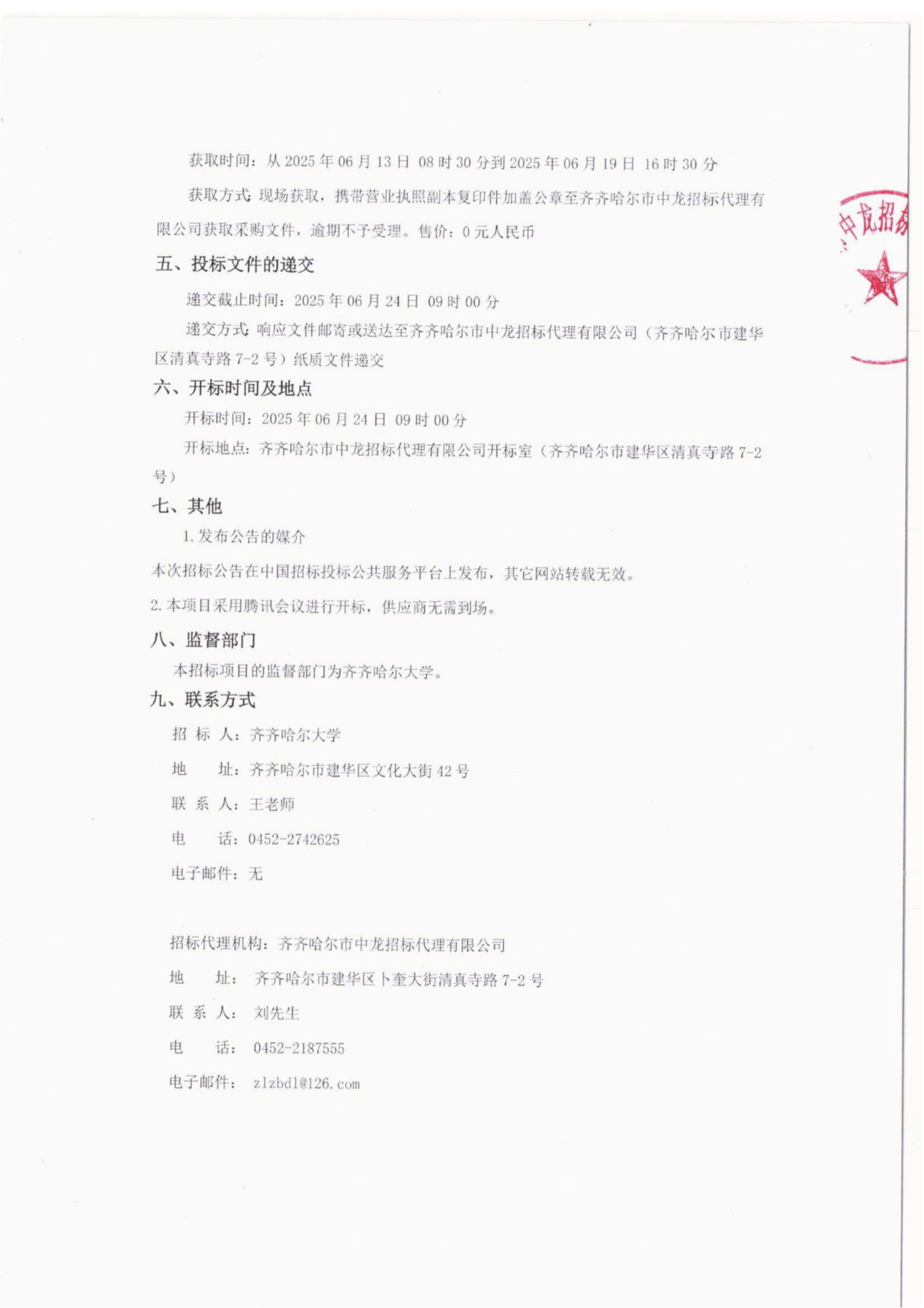 上一条:齐齐哈尔大学学校食堂食品原材料采购项目12包(二次)流标公告(转自中国招标投标公共服务平台)
