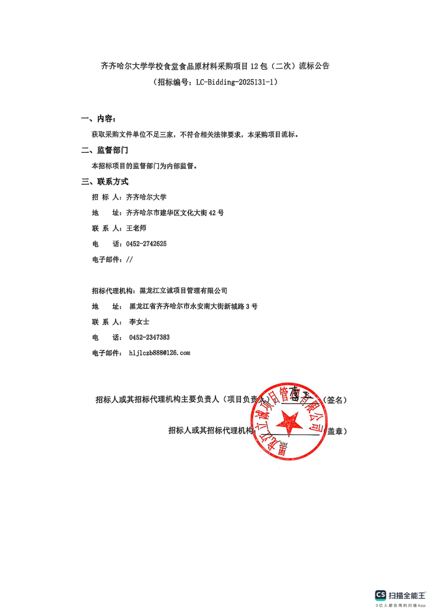 下一条:齐齐哈尔大学学生平安意外险项目竞争性磋商公告(转自中国招标投标公共服务平台)