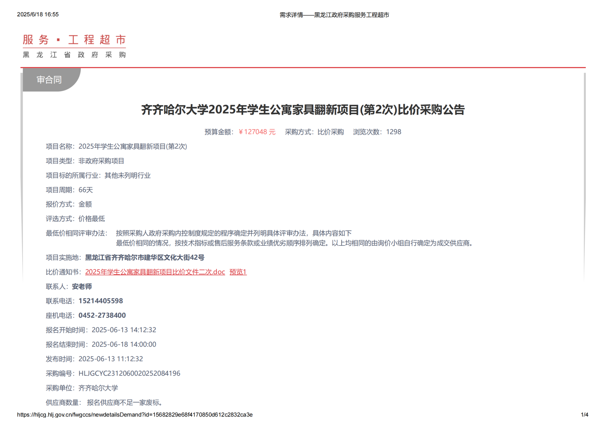 下一条:齐齐哈尔大学PP试剂柜采购比价项目比价采购需求公告(转自黑龙江省政府采购网)
