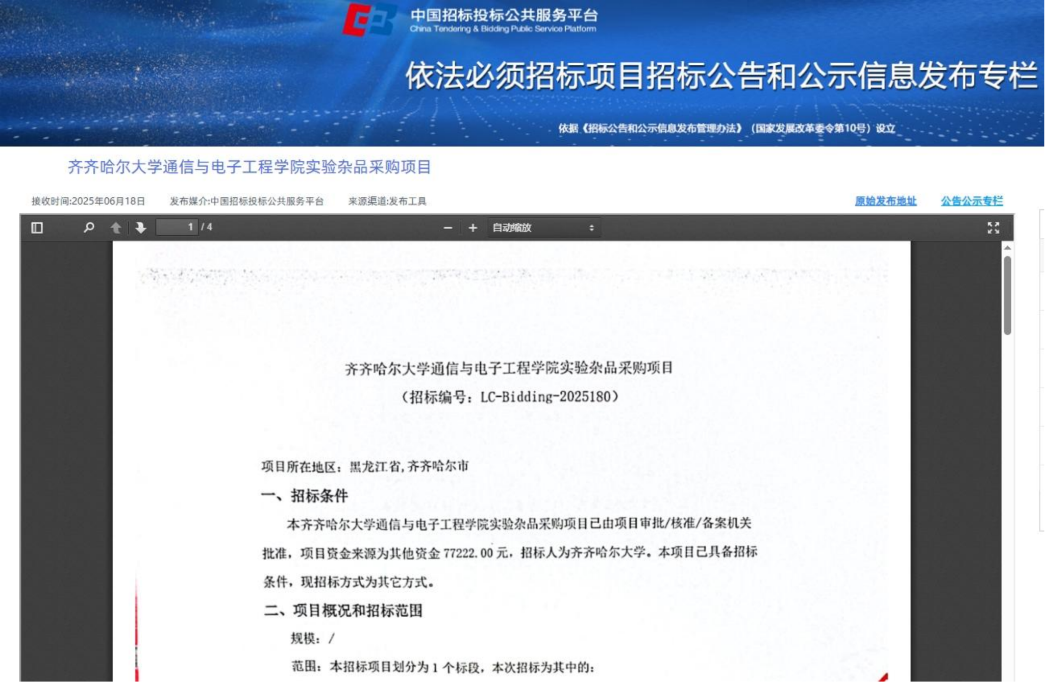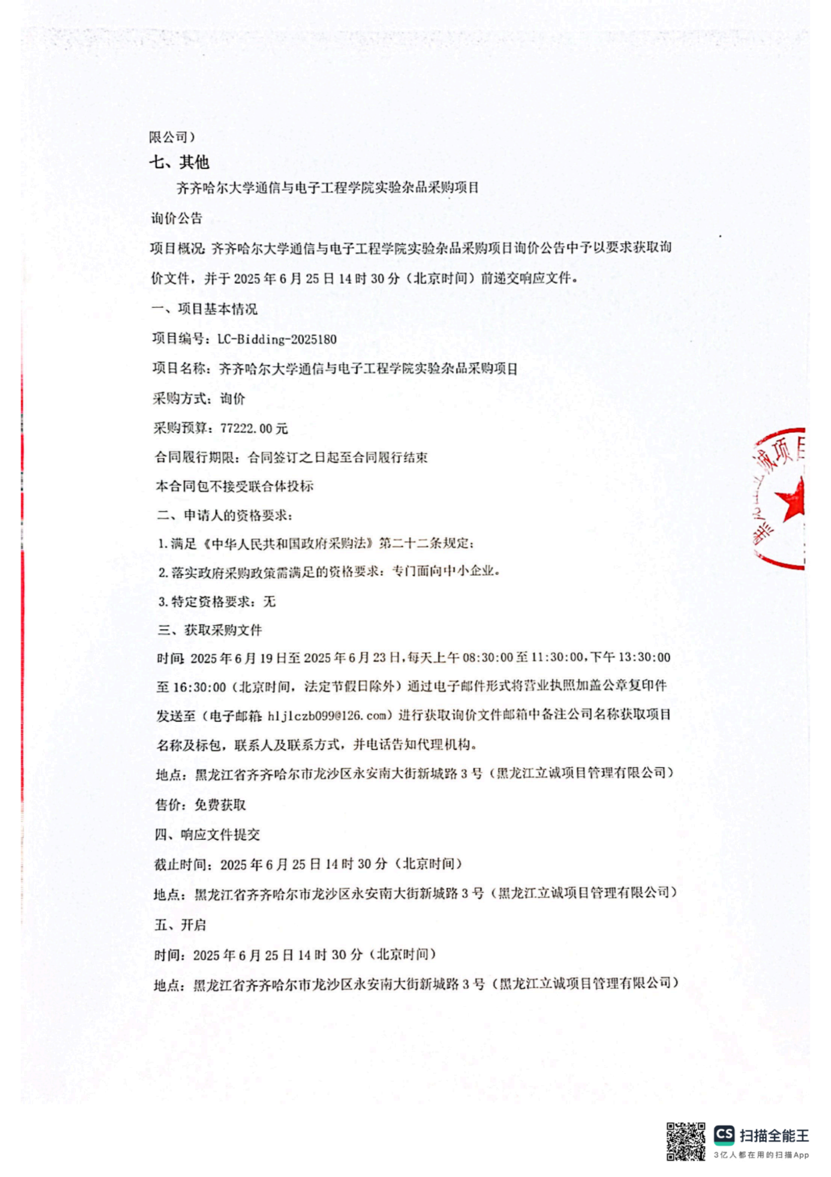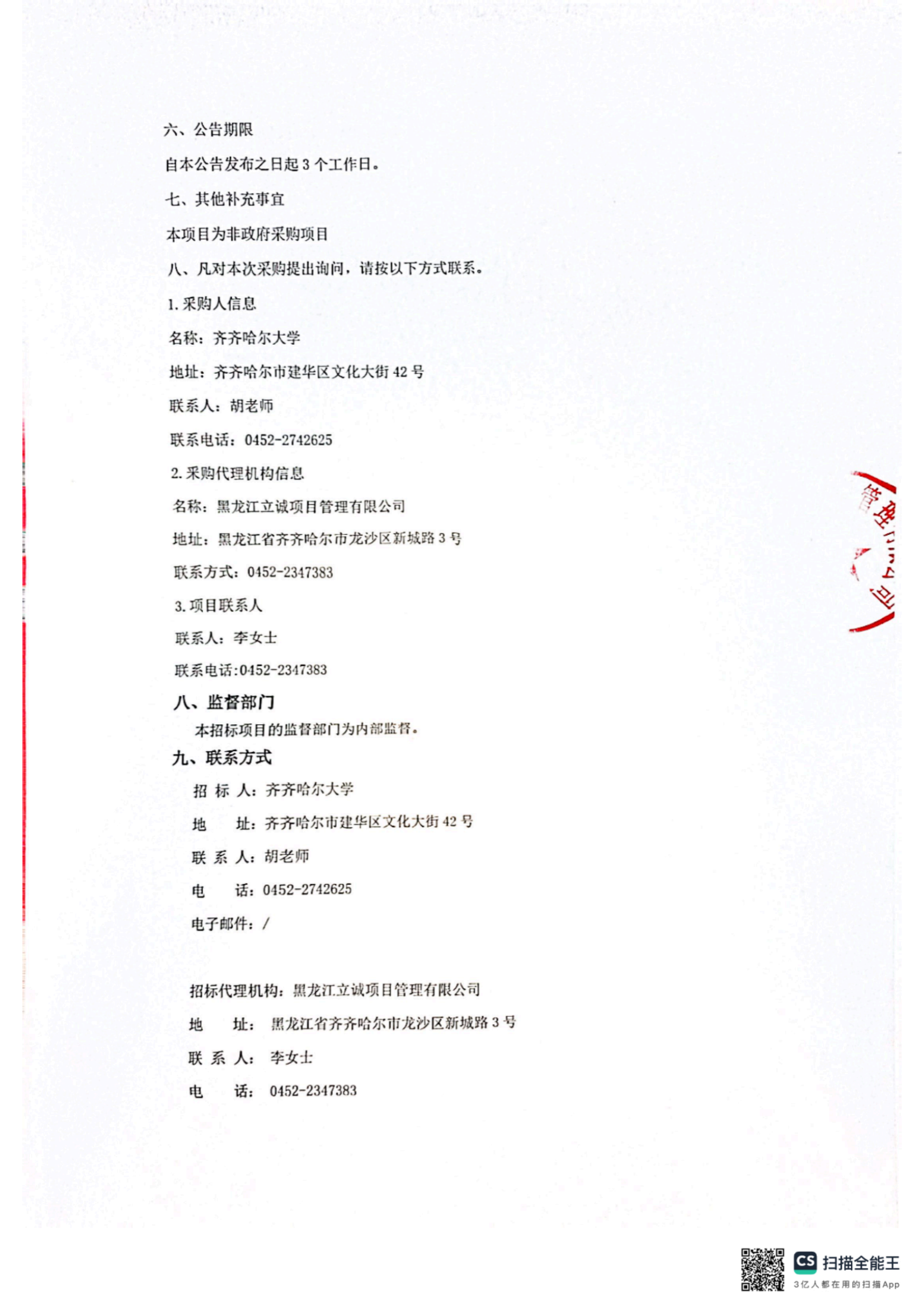 下一条:齐齐哈尔大学本科生证书印刷服务采购项目竞争性磋商公告(转自黑龙江省政府采购网)
