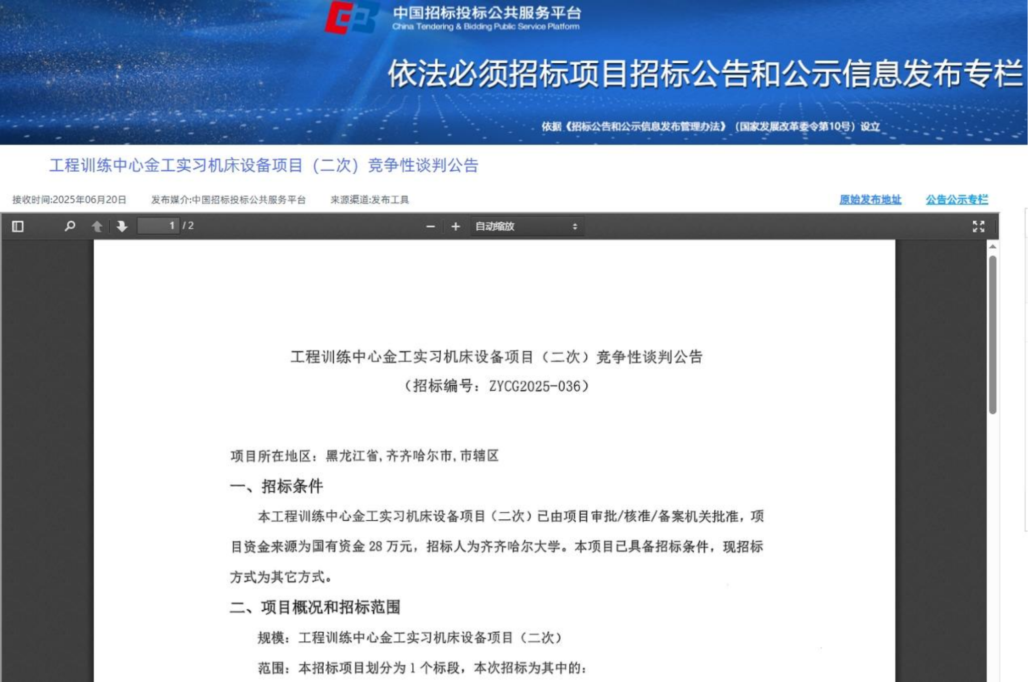 下一条:齐齐哈尔大学清冰雪服务-流标(三次)公告(转自中国招标投标公共服务平台)