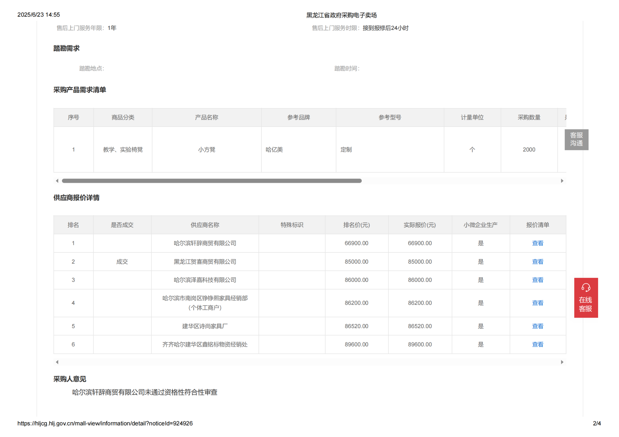上一条:齐齐哈尔大学2025年学生公寓上下铺公寓床(普通)比价比价采购成交公告(转自黑龙江省政府采购网)