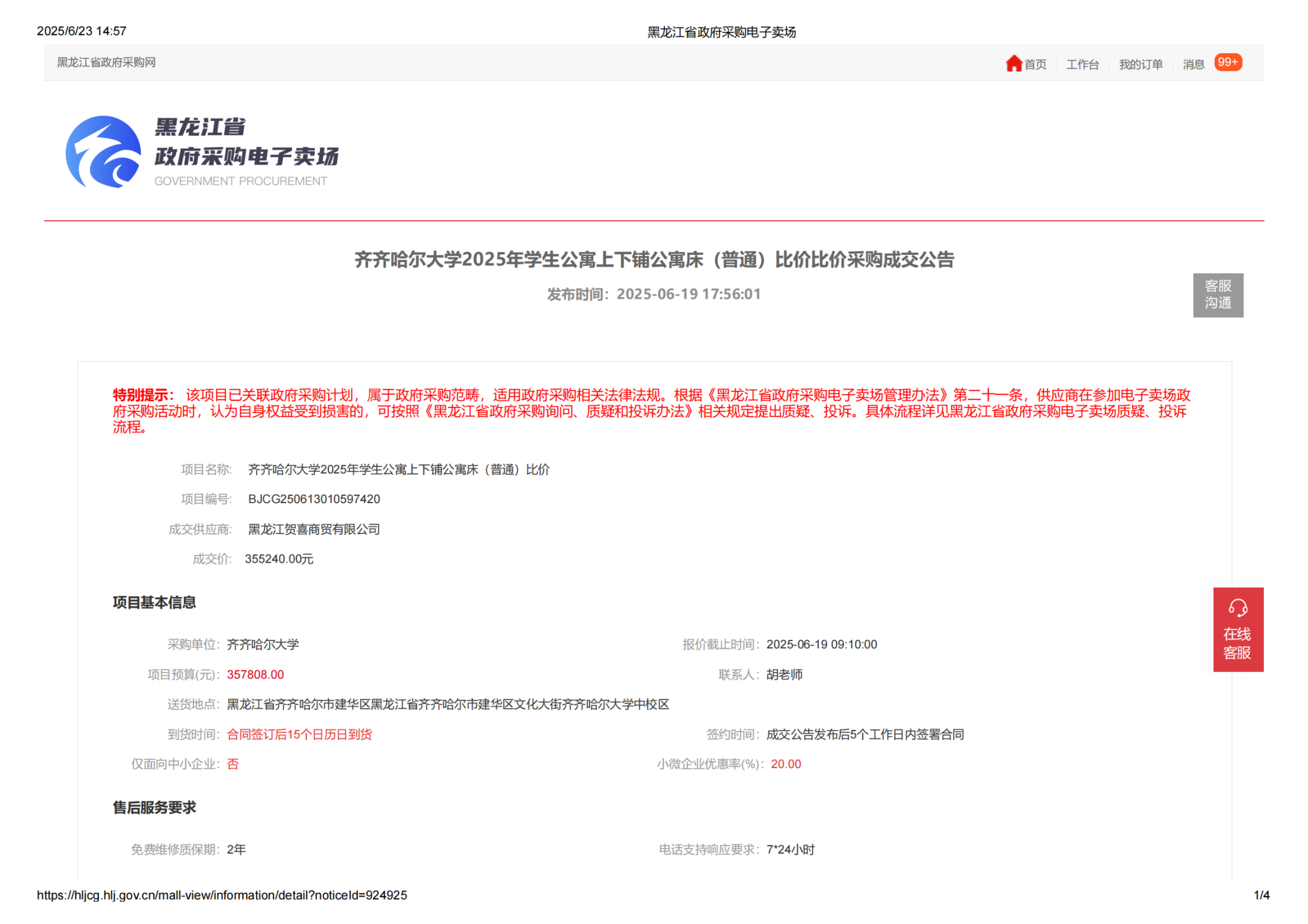 下一条:齐齐哈尔大学2025年学生公寓小方凳采购比价比价采购成交公告(转自黑龙江省政府采购网)