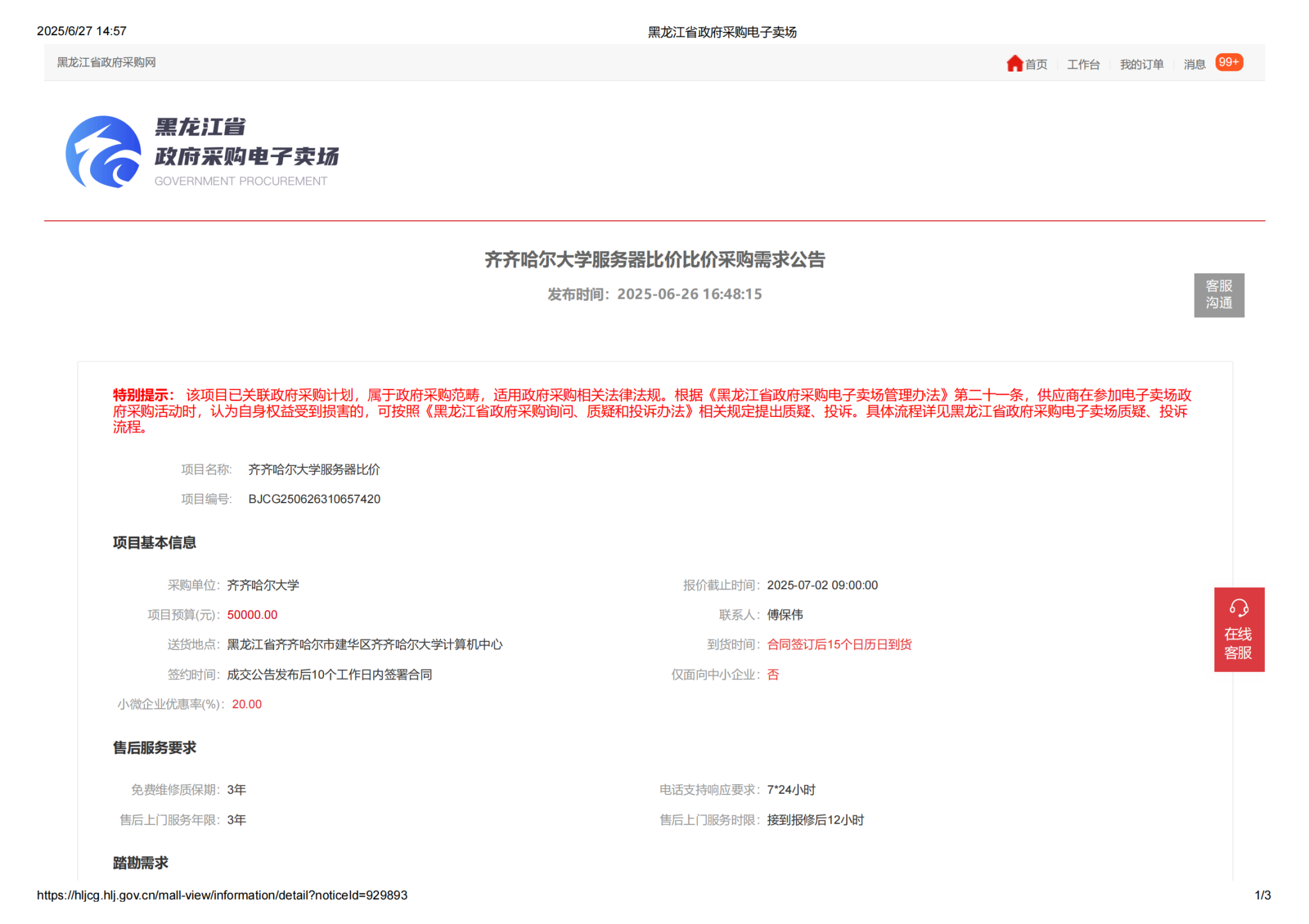下一条:齐齐哈尔大学其他台、桌类比价比价采购需求公告(转自黑龙江省政府采购网)