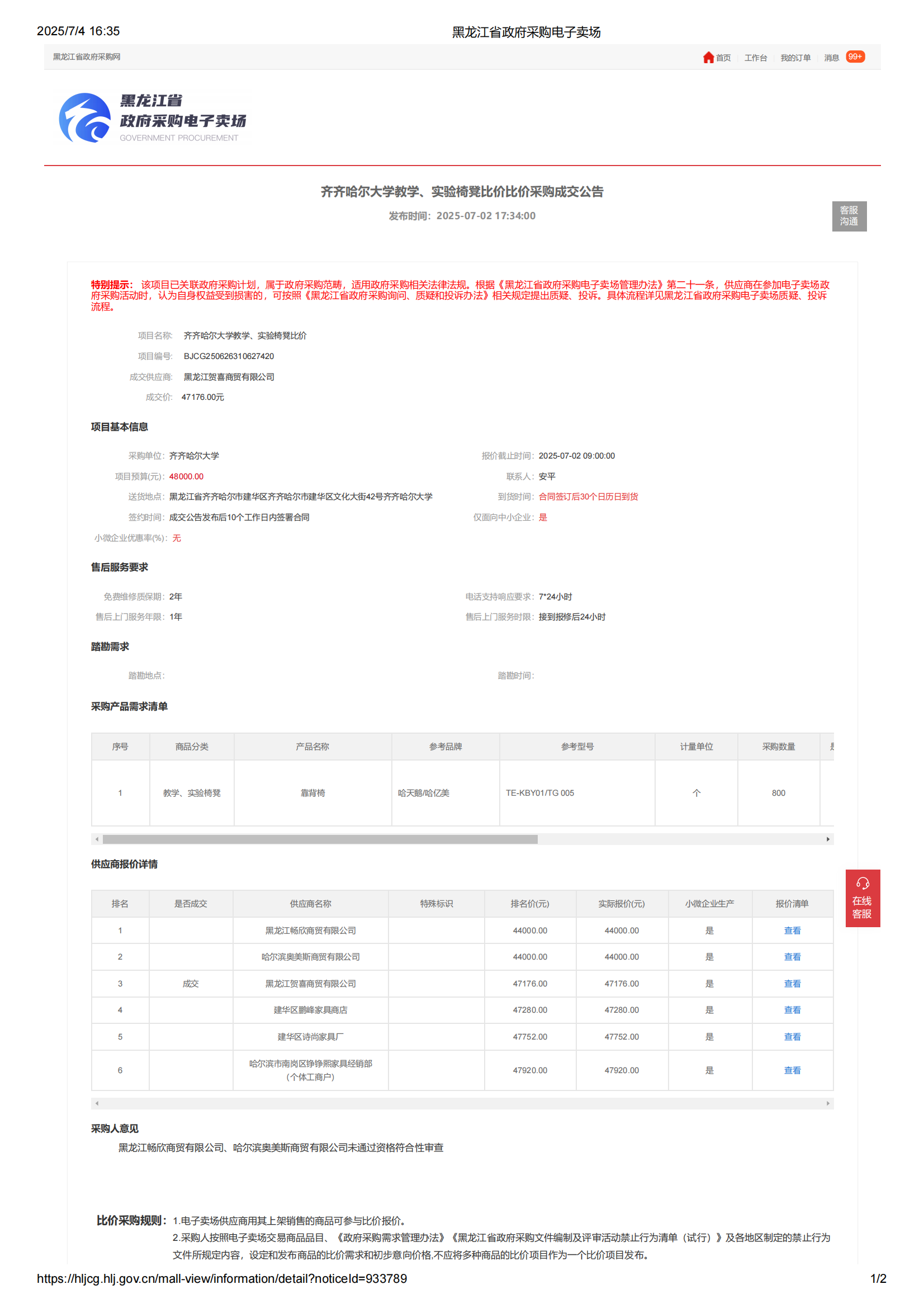 下一条:齐齐哈尔大学其他台、桌类比价比价采购成交公告(转自黑龙江省政府采购网)