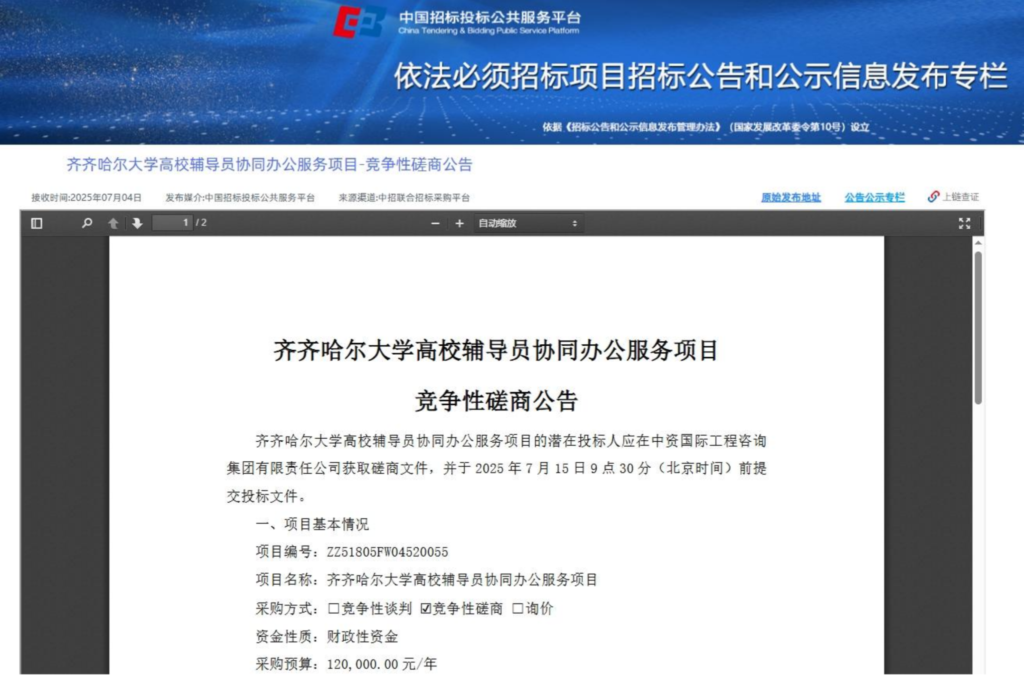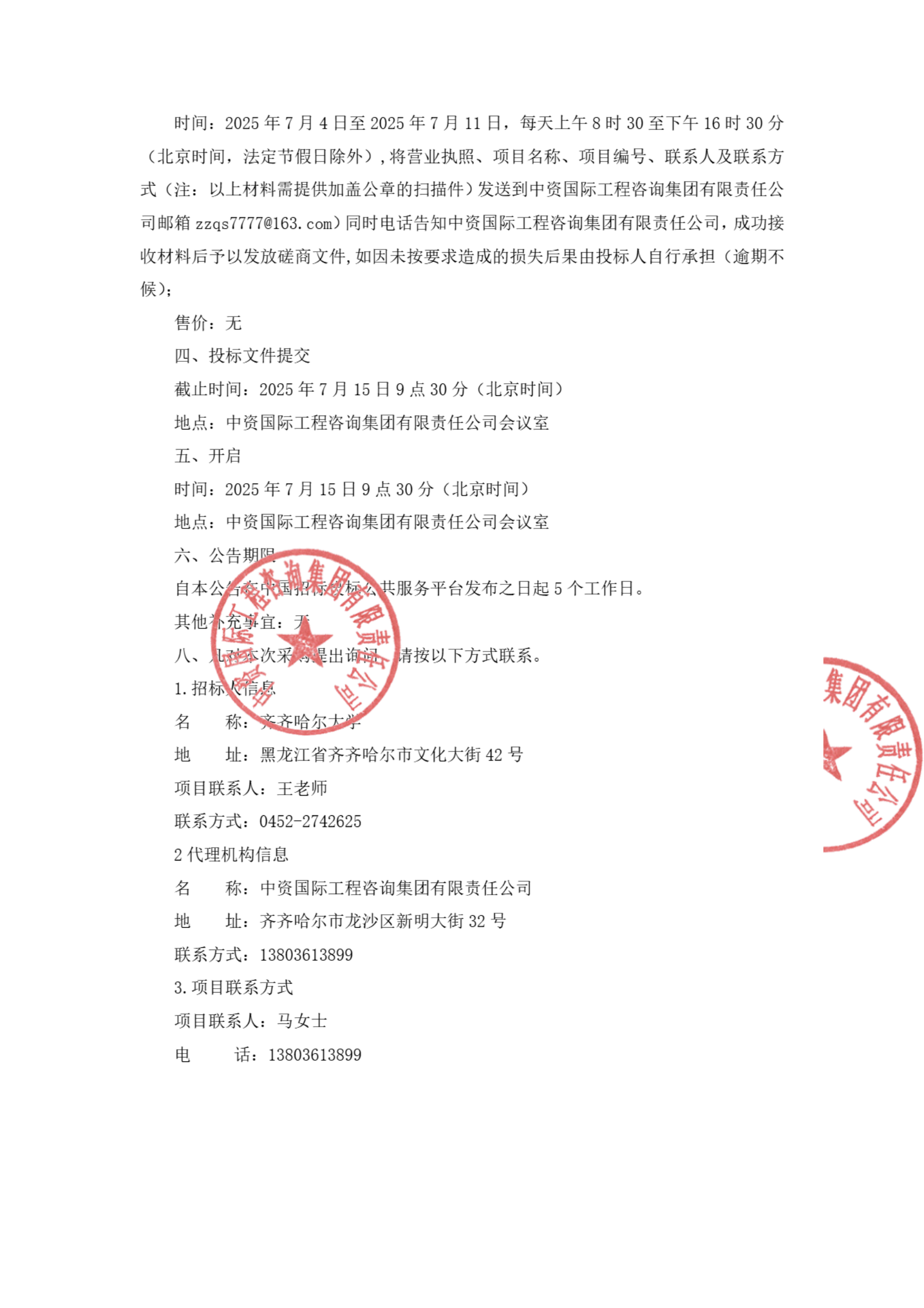 上一条:齐齐哈尔大学招标采购代理机构服务采购项目中标(成交)结果公告