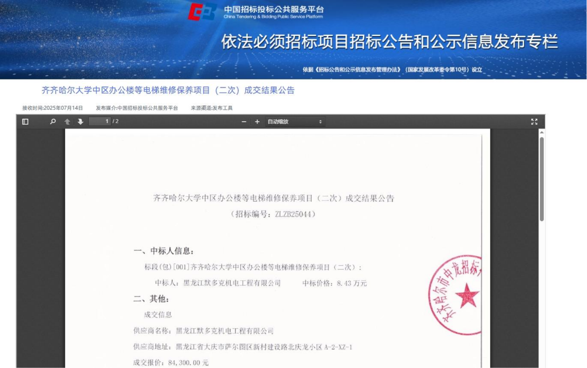 上一条:齐齐哈尔大学建筑与土木工程学院补充更新教学设备项目(一)竞争性谈判公告(转自黑龙江省政府采购网)