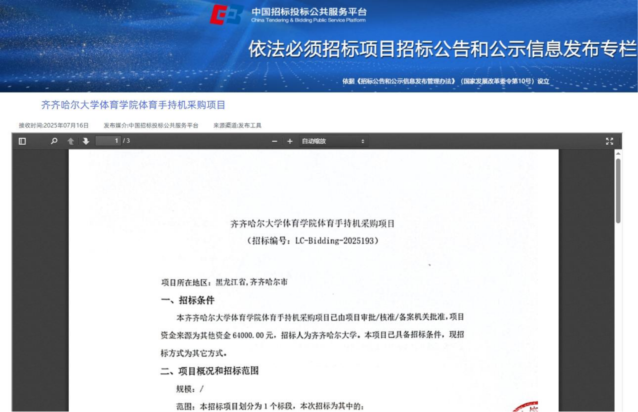 下一条:齐齐哈尔大学3处快递驿站分别招租公告(转自黑龙江联合产权交易所)