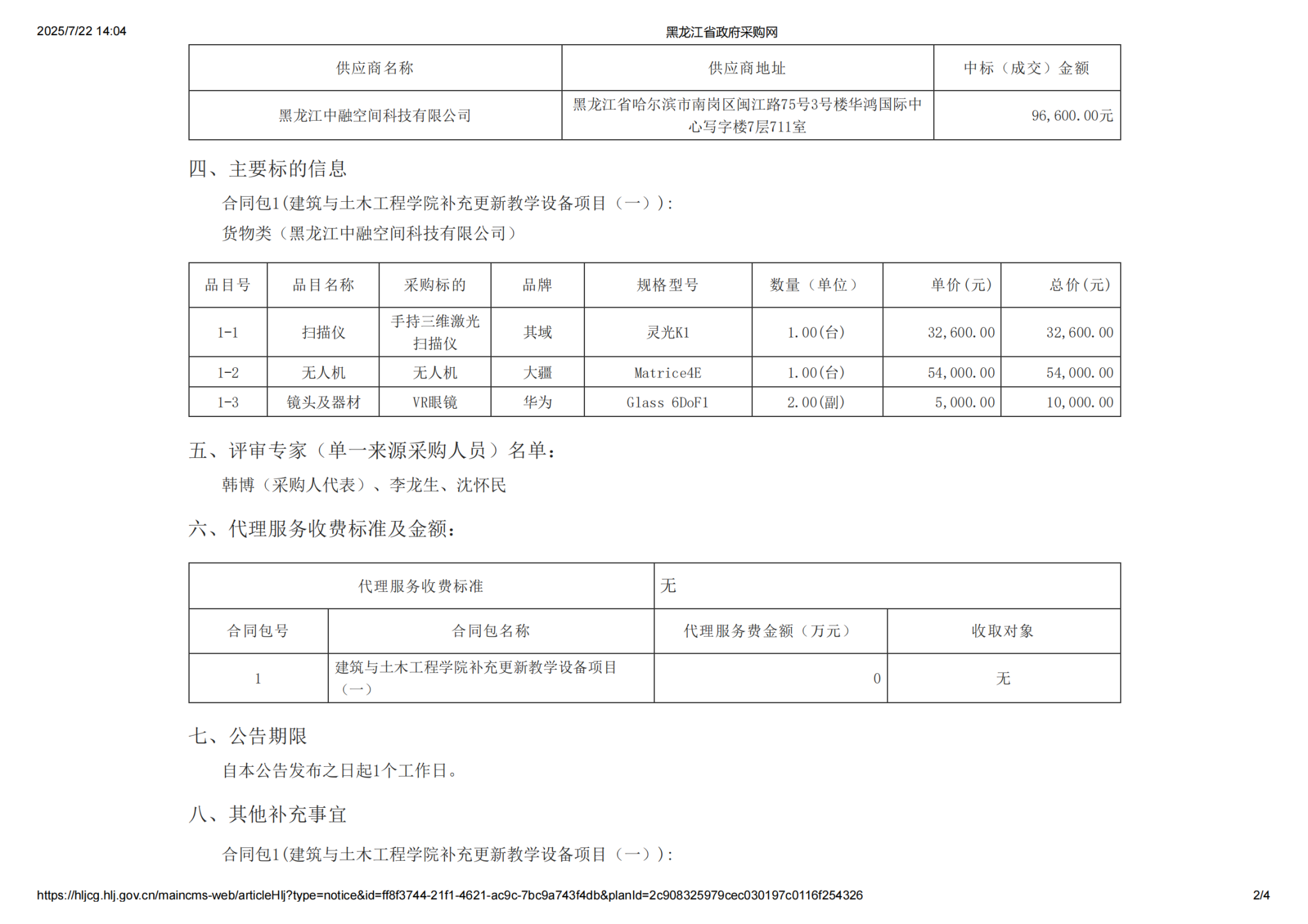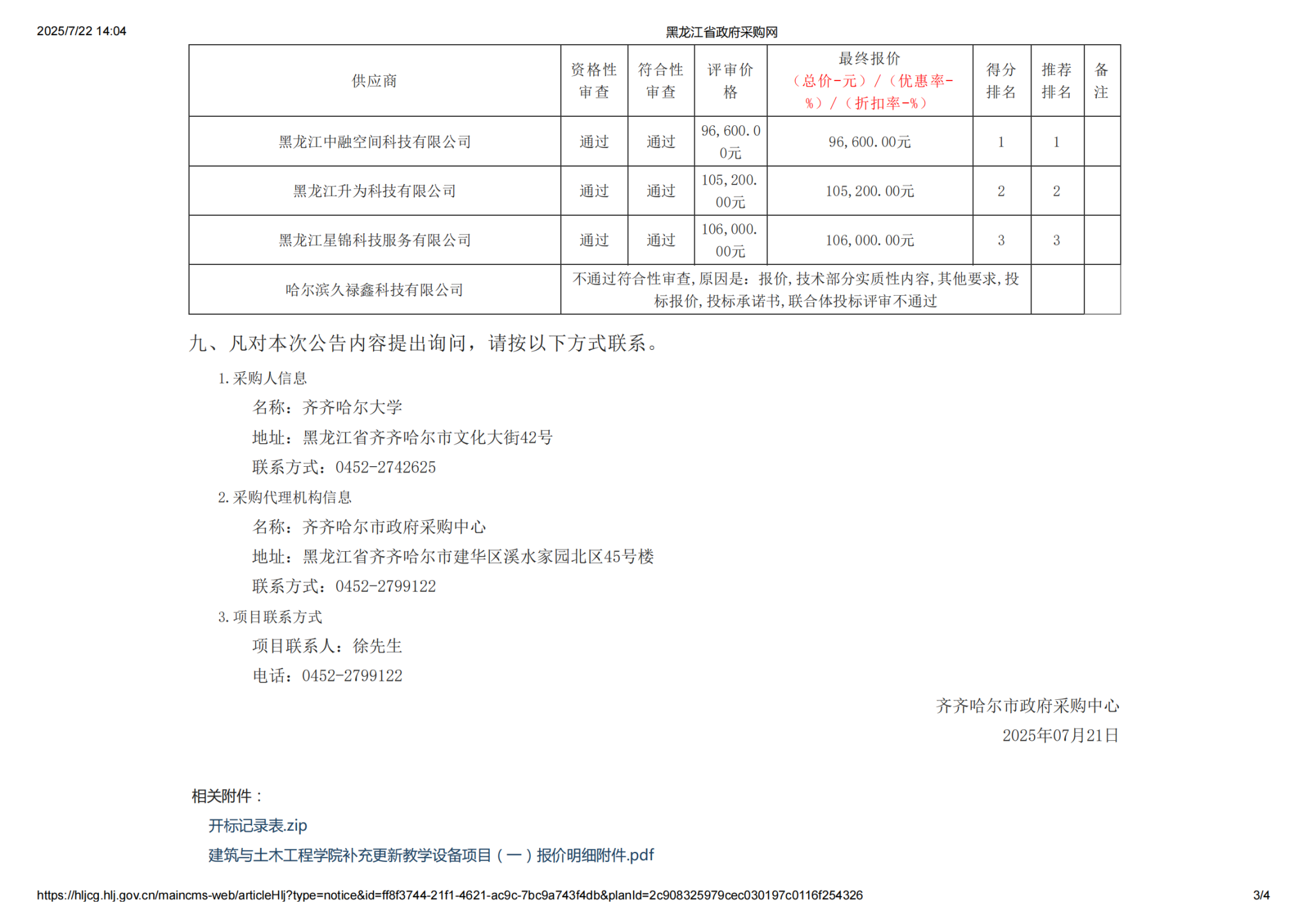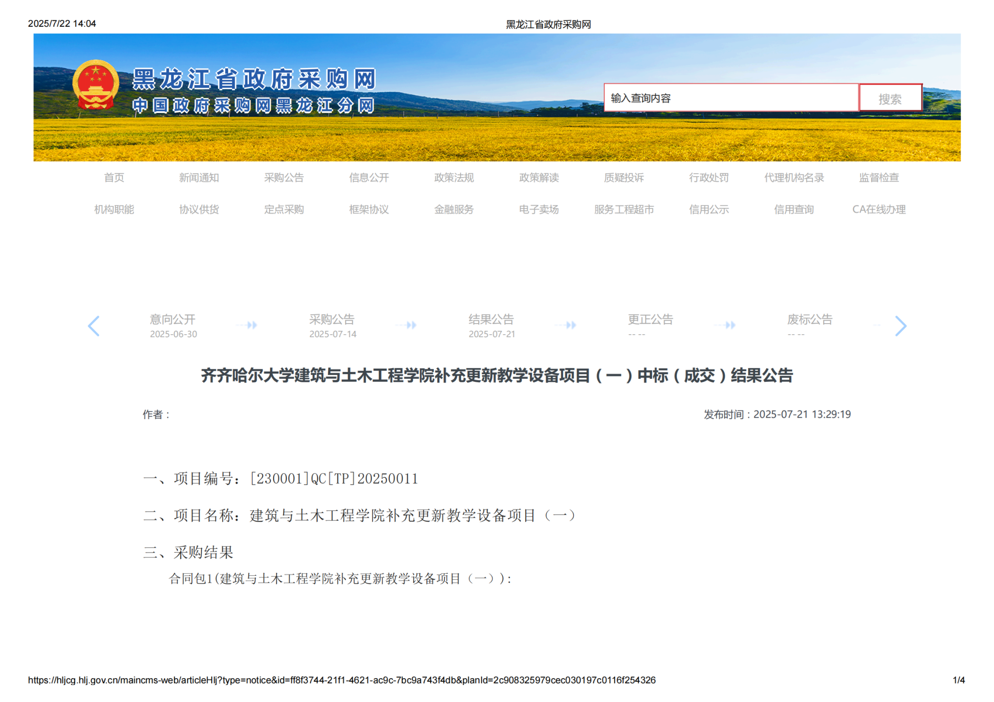 上一条:齐齐哈尔大学建筑与土木工程学院补充更新教学设备项目(二)中标(成交)结果公告(转自黑龙江省政府采购网)
