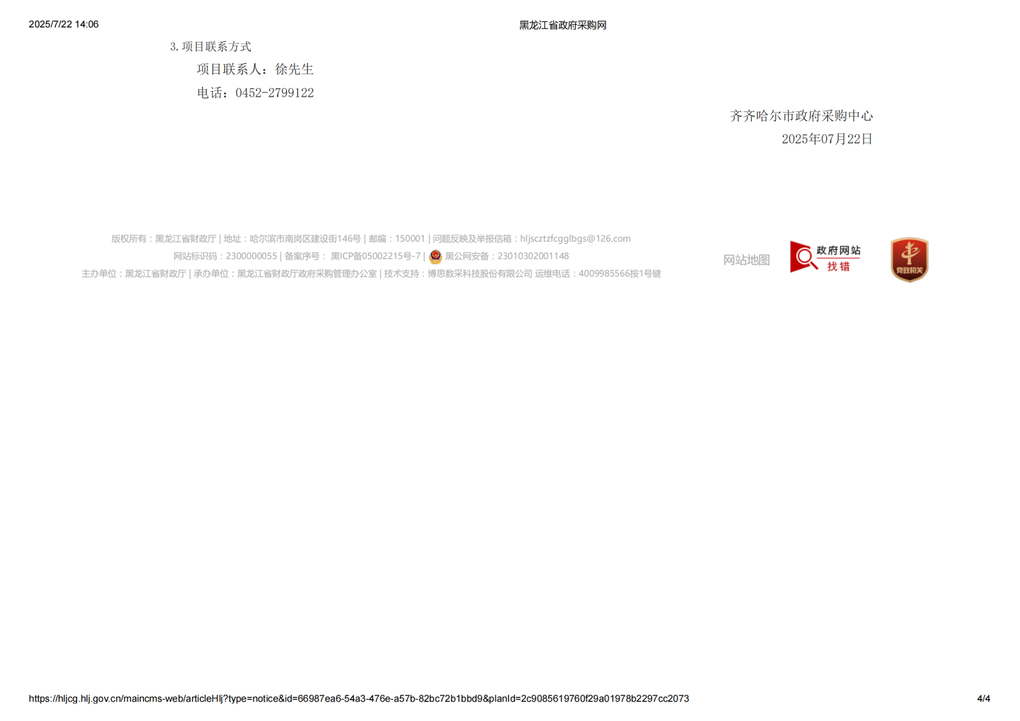 下一条:齐齐哈尔大学生命科学与农林学院补充更新教学设备项目竞争性谈判公告(转自黑龙江省政府采购网)